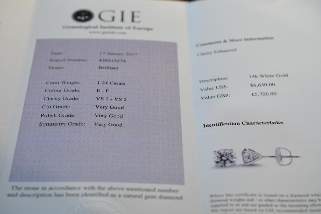 Серьги пусеты из белого золота с бриллиантами 1.24 ct