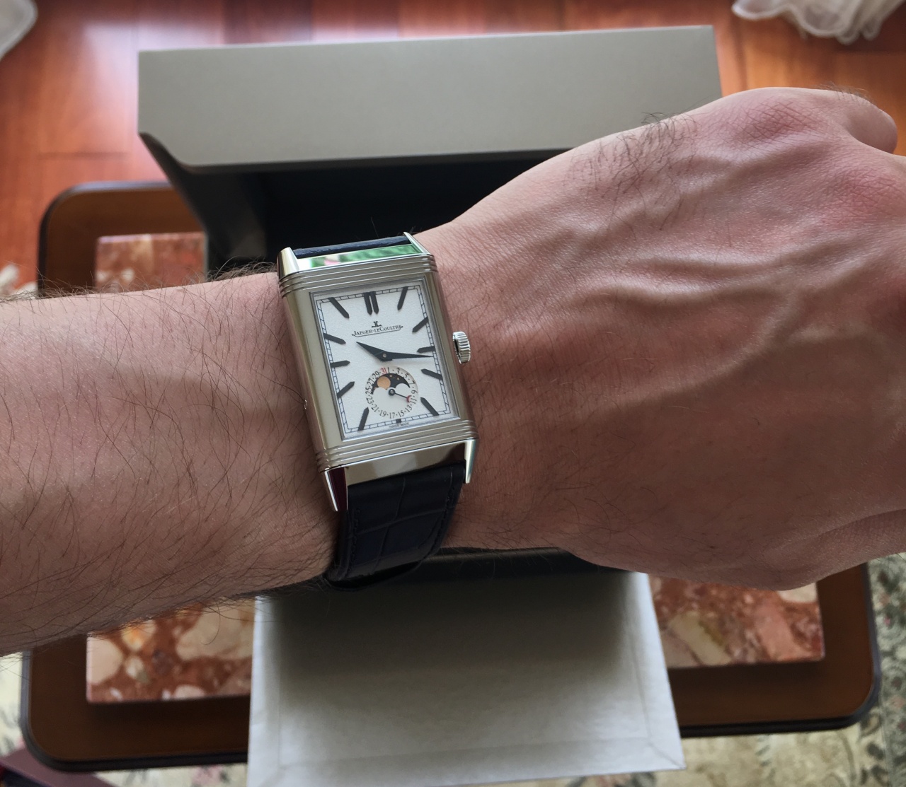 Размер корпуса: 49,4 х 29,9, толщина: 10,9мм. И 49,4мм - это то, что больше всего смущало в покупке вслепую. Никогда раньше не примерял реверсо, не помню даже, чтобы держал подобные в руках, поэтому опасался, что они, как костюмники, окажутся слишком крупными для моего не самого большого запястья в 17,5 см. А эти, вдобавок ко всему, еще и одни из самых больших в линейке. Но, как оказалось, переживал зря - сели они замечательно. Даже лишние пару мм вряд ли им навредили бы)