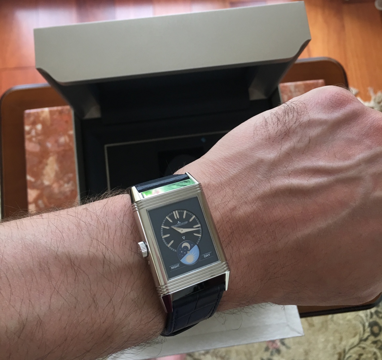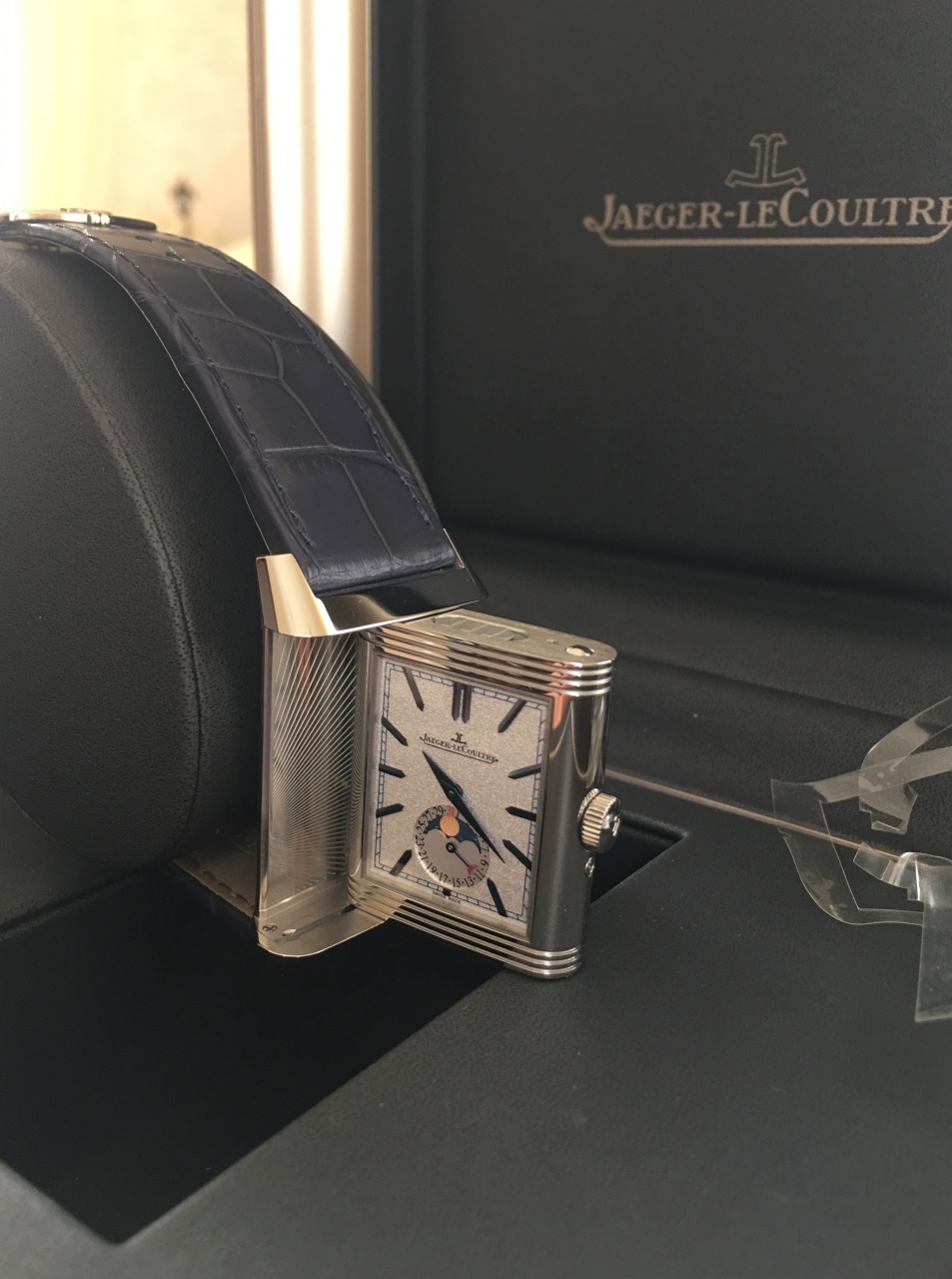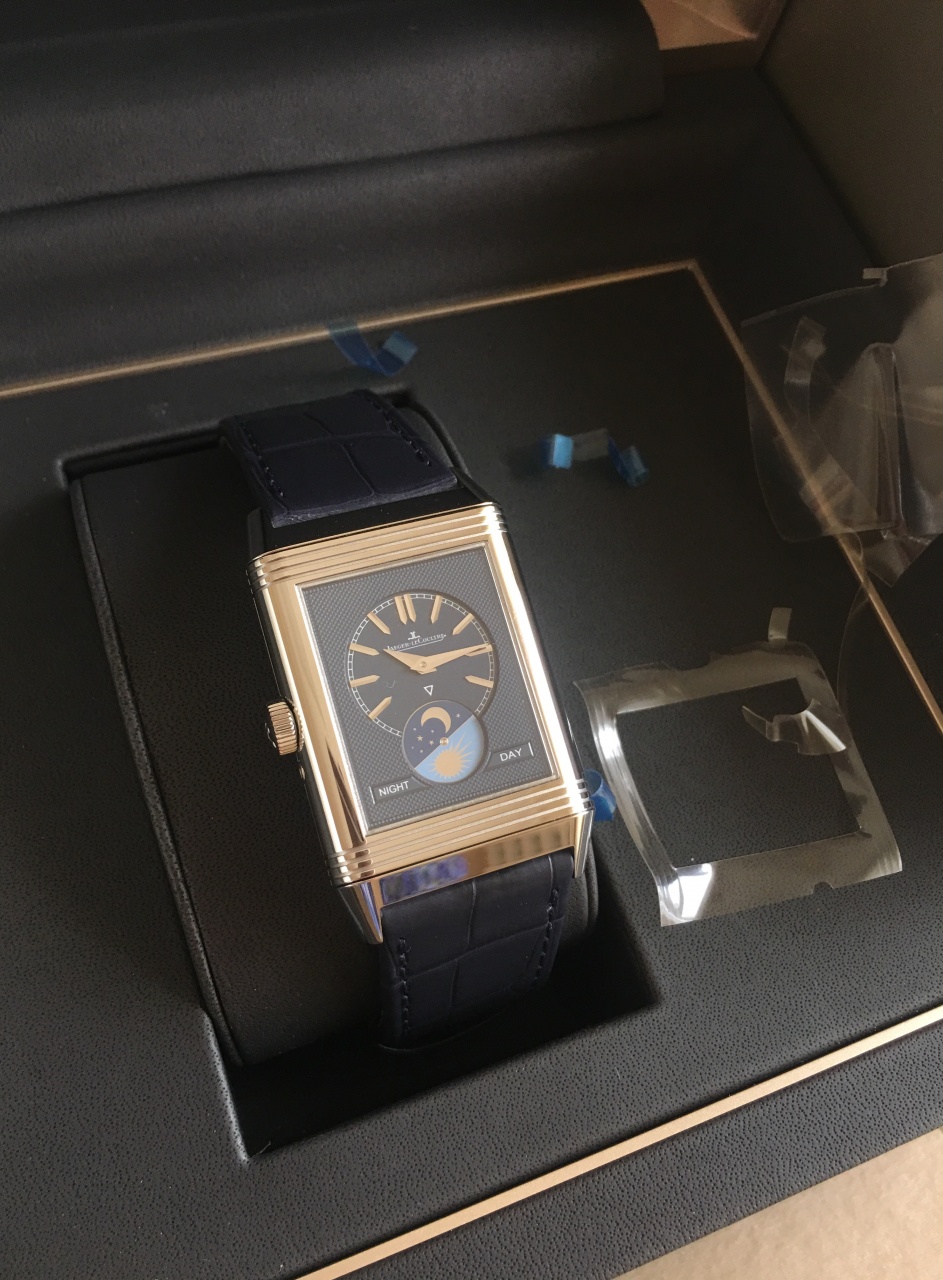 Периодически поглядывал на строгие лаконичные часы на ремне, но без особого энтузиазма - когда дело доходило до покупки, все-таки, отдавал предпочтение часам на браслете. Но, увидев эти, не смог пройти мимо. Сильно запали в душу заочно, по фотографиям в сети. Более того, вживую получилось их рассмотреть только когда получил, то есть уже после покупки. И надо сказать, при личном знакомстве произвели они еще большее впечатление. Все те особенности, благодаря которым я и обратил на них внимание, действительно, оказались стоящими: цвет и фактура цифера, цвет и форма меток, стрелок, такое красивое усложнение, как лунный календарь, форма корпуса, полноценный второй циферблат, полностью отличающийся от основного как цветом, так и оформлением. Исполнение часов первоклассное, абсолютно не к чему придраться в плане качества. Короче говоря, это маленькое, не побоюсь этого слова, произведение часового искусства) Единственный, но незначительный минус для меня в данном экземпляре - наличие даты. Без нее цифер смотрелся бы еще строже, хоть и оформлена она максимально гармонично.