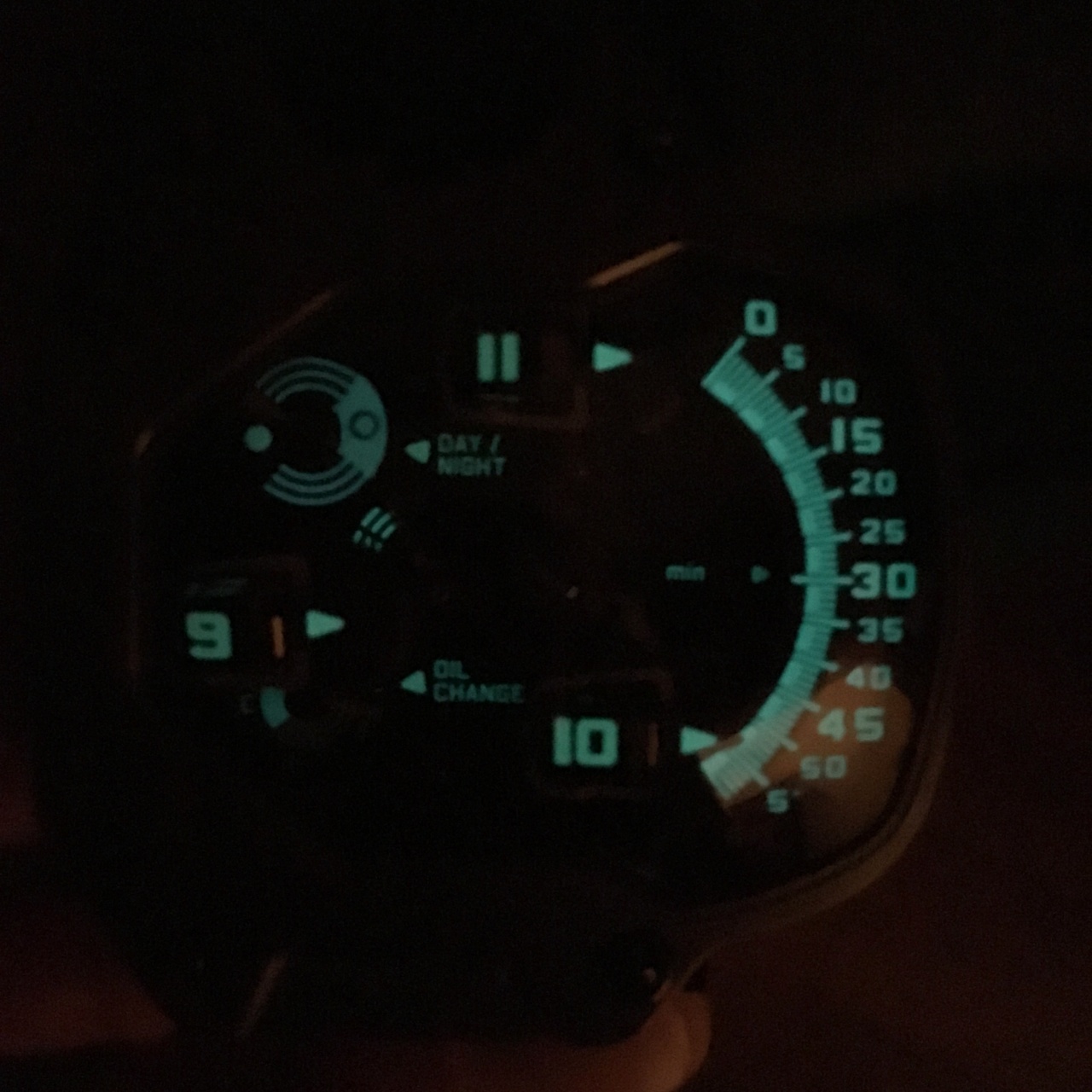 Панель управления: индикаторы день/ночь, «Oil Change» и 60-секундный счетчик.