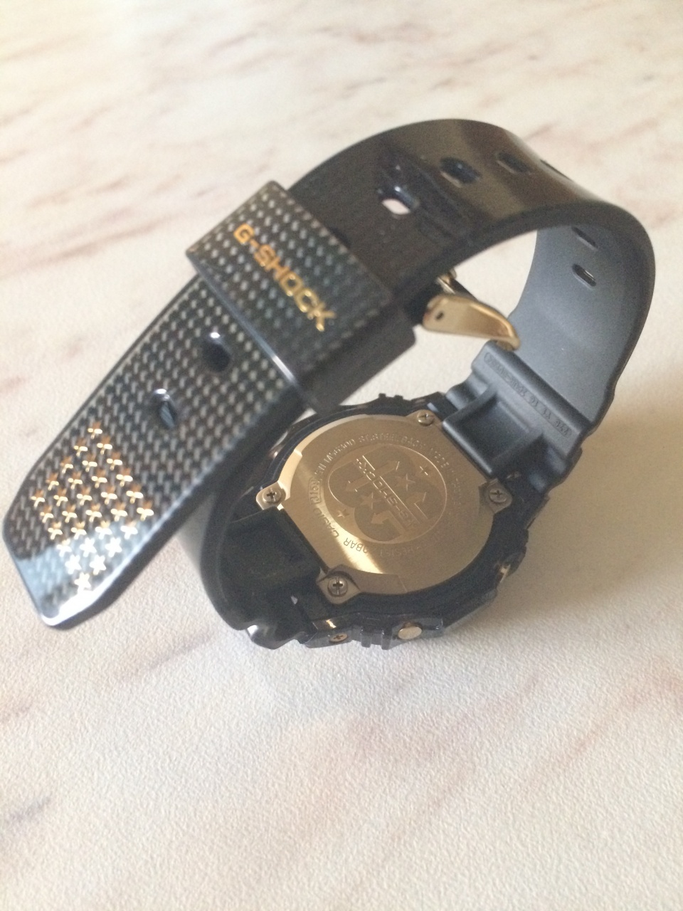Лимитированная модель в черном корпусе, выпущенная на 30-летие бренда G-SHOCK. Юбилейная упаковка, золотые кнопки, застежка и задняя крышка, карбоновая текстура.