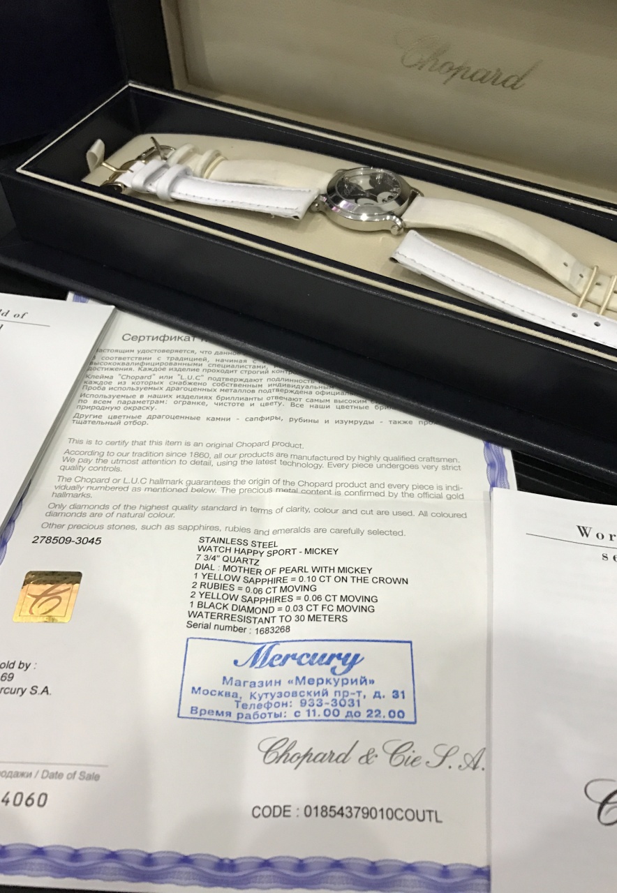 НЕДОРОГО, РЕДКИЕ CHOPARD HAPPY SPORT MICKEY MOUSE, ПОЛНЫЙ КОМПЛЕКТ, ТОРГ/ОБМЕН/ОТПРАВКА