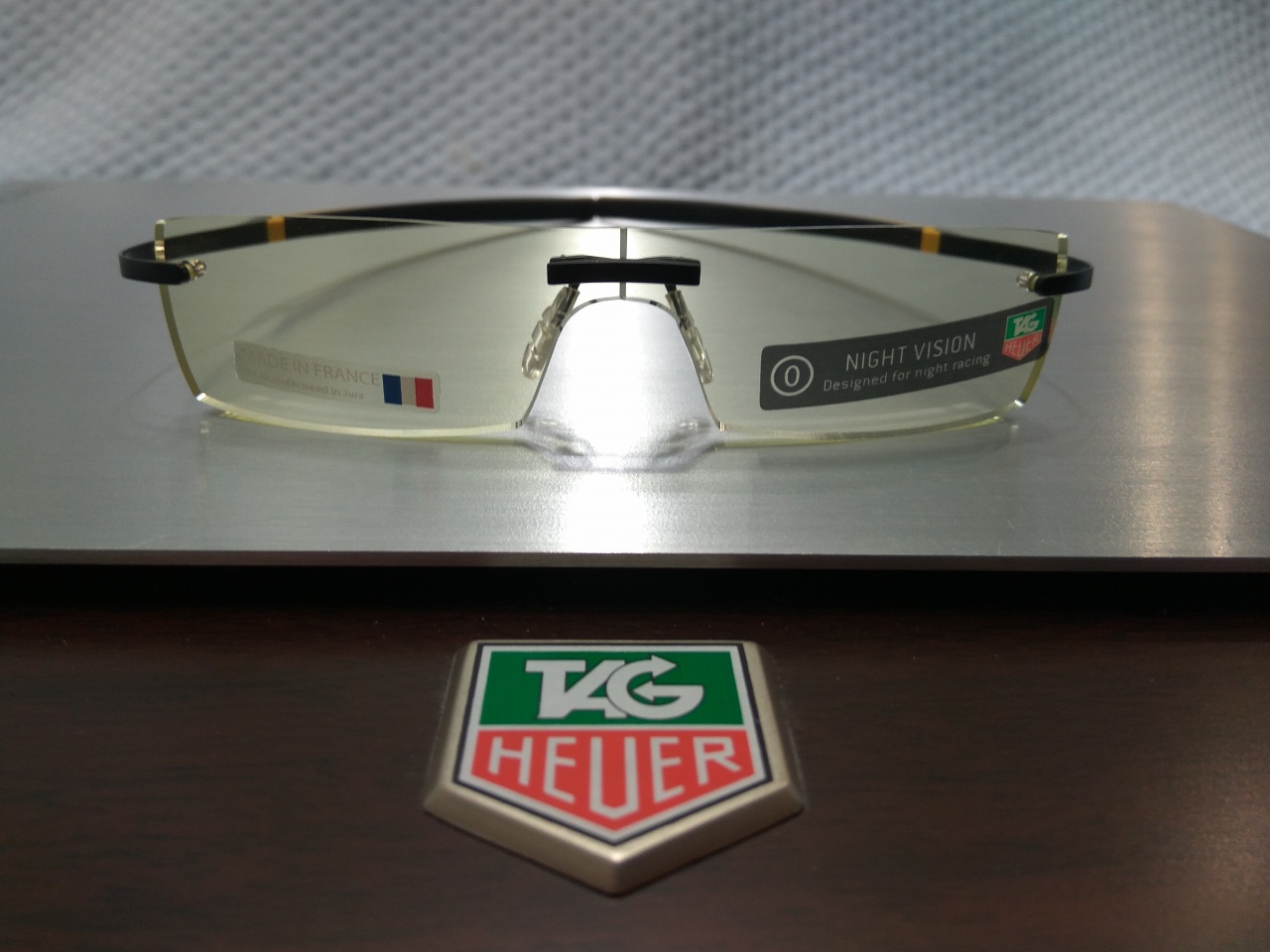 "With TAG Heuer Night Vision, the term “Avant-Garde Eyewear “ takes on its full meaning. Night Vision technology corrects natural night-time myopia and is tested and approved by professional racing-car drivers. Special pale yellow lenses enhance night-time contrasts, giving an impression of luminosity. Glare and eye fatigue are reduced.For the mythic Le Mans 24 Hour race, TAG Heuer equips the Audi Sport team with award-winning Squadra Night Vision – the world’s first opthalmic shield with integrated corrective lenses.TAG Heuer Night Vision. You’ll want to wait till dark before driving home."