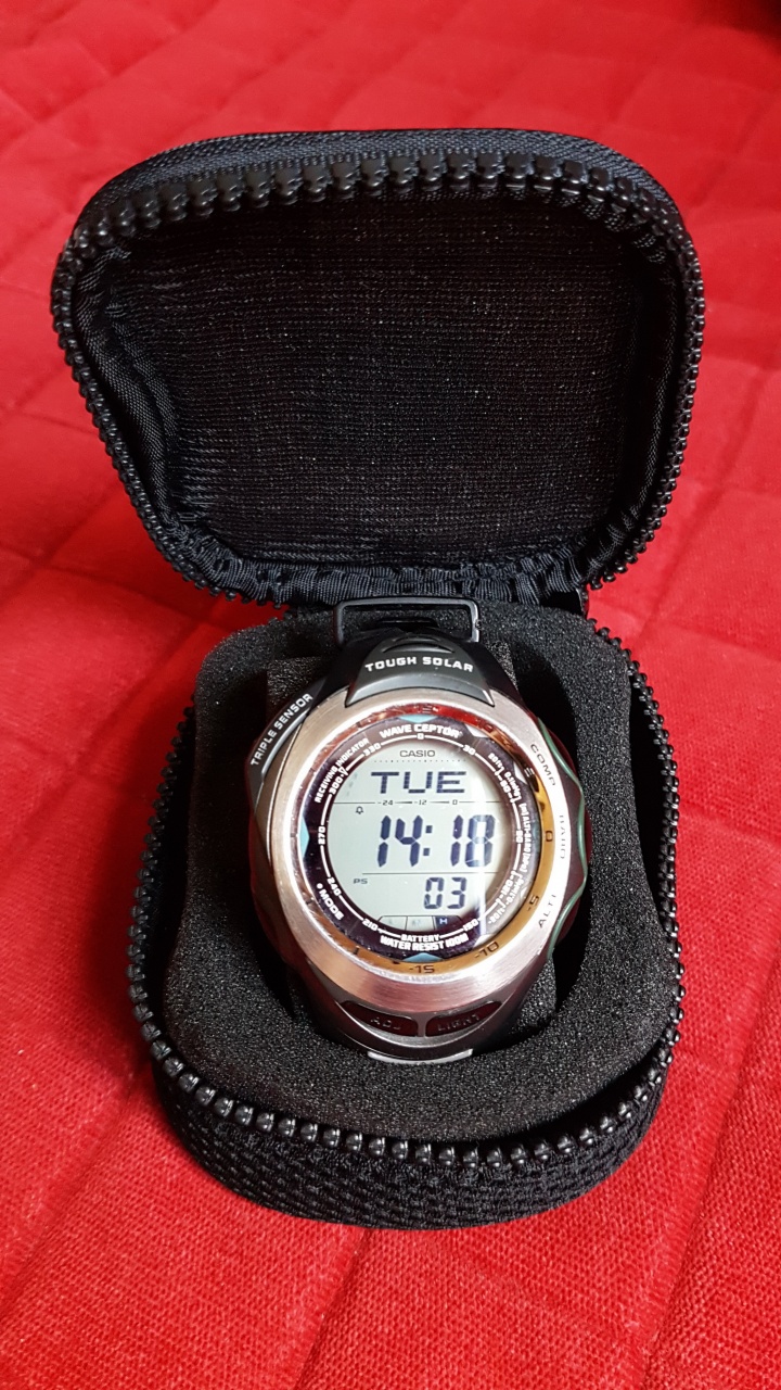 Многофункциональные часы Casio PRW-1200-1V. Куплены в Токио и сделаны в Японии. Состояние очень хорошее! Электролюминисцентная подсветка. Автоматическая коррекция показаний по радиосигналам точного времени. Подзарядка аккумулятора от энергии солнечного света. Модуль часов рассчитан на работу при низких температурах. Барометр часов PRW-1200: встроенный датчик давления для измерения барометрического давления. Встроенный датчик температуры. Встроенный цифровой компас. Альтиметр: встроенный датчик барометрического давления с возможностью вывода результатов в единицах высоты над уровнем моря. Максимальная высота - 10000 метров над уровнем моря. Отображение величины изменения между стартовой и текущей позициями над уровнем моря. Мировое время - отображение текущего времени в основных городах и регионах мира. Секундомер с точностью показаний 1/100 сек и максимальным временем измерения - 10 час. Таймер с функцией автоповтора. Сигнал начала часа. 5 ежедневных будильников. Индикатор уровня зарядки элемента питания. Автоматический календарь.