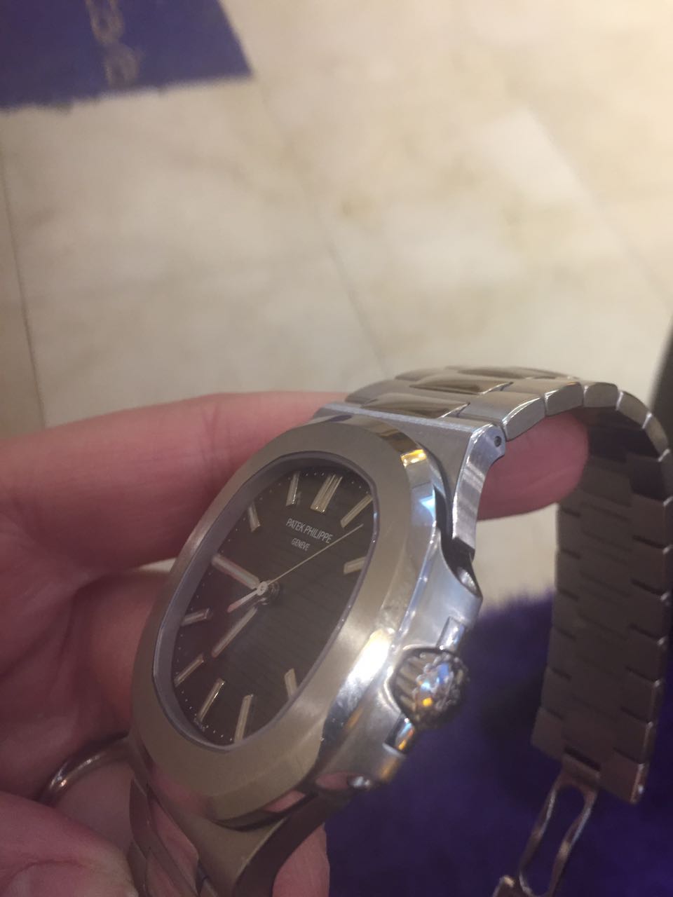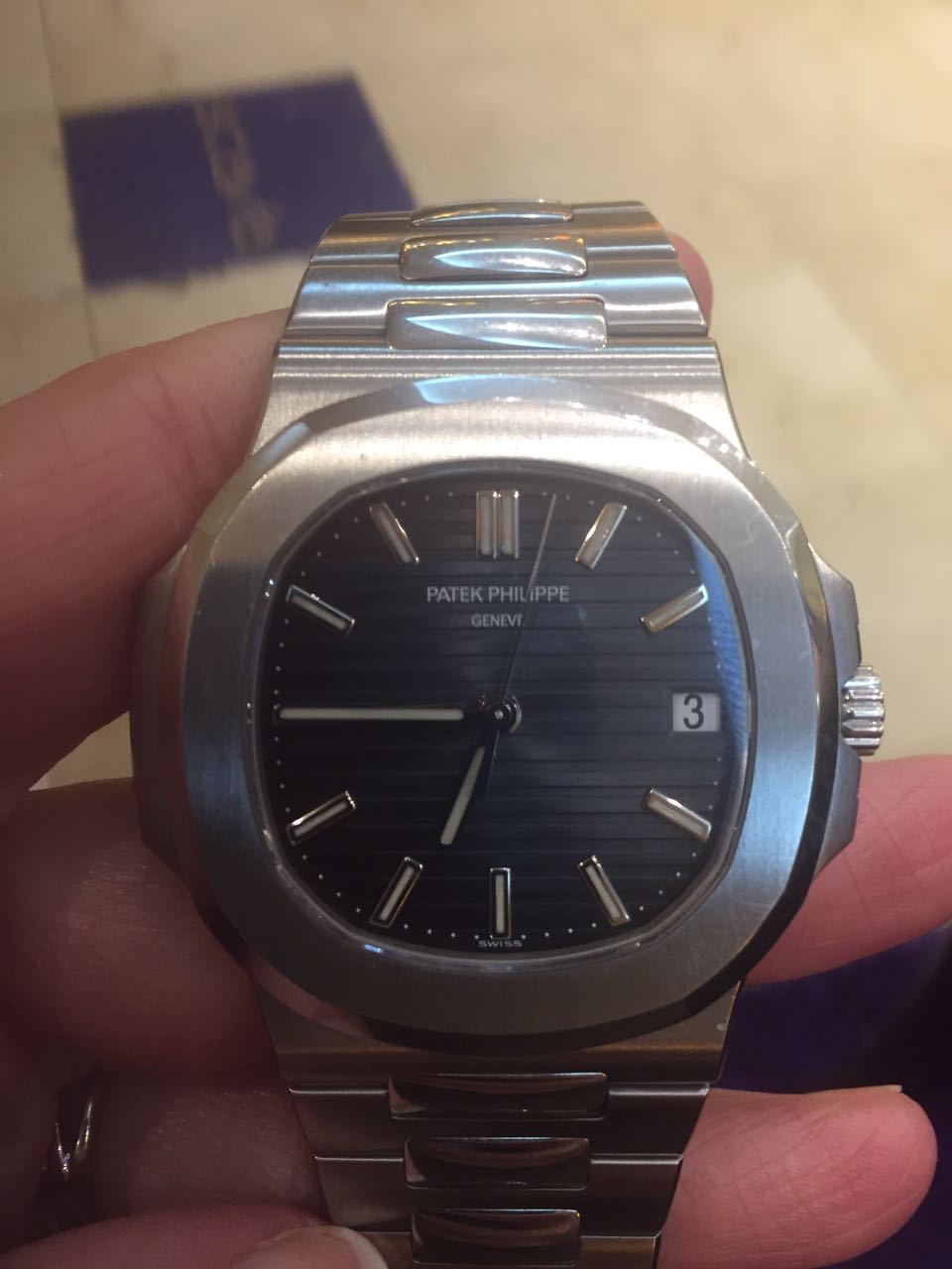 Данная модель часов коллекции Nautilus выполнена в стальном варианте, имеет темный циферблат с делениями и серебристыми стрелками.