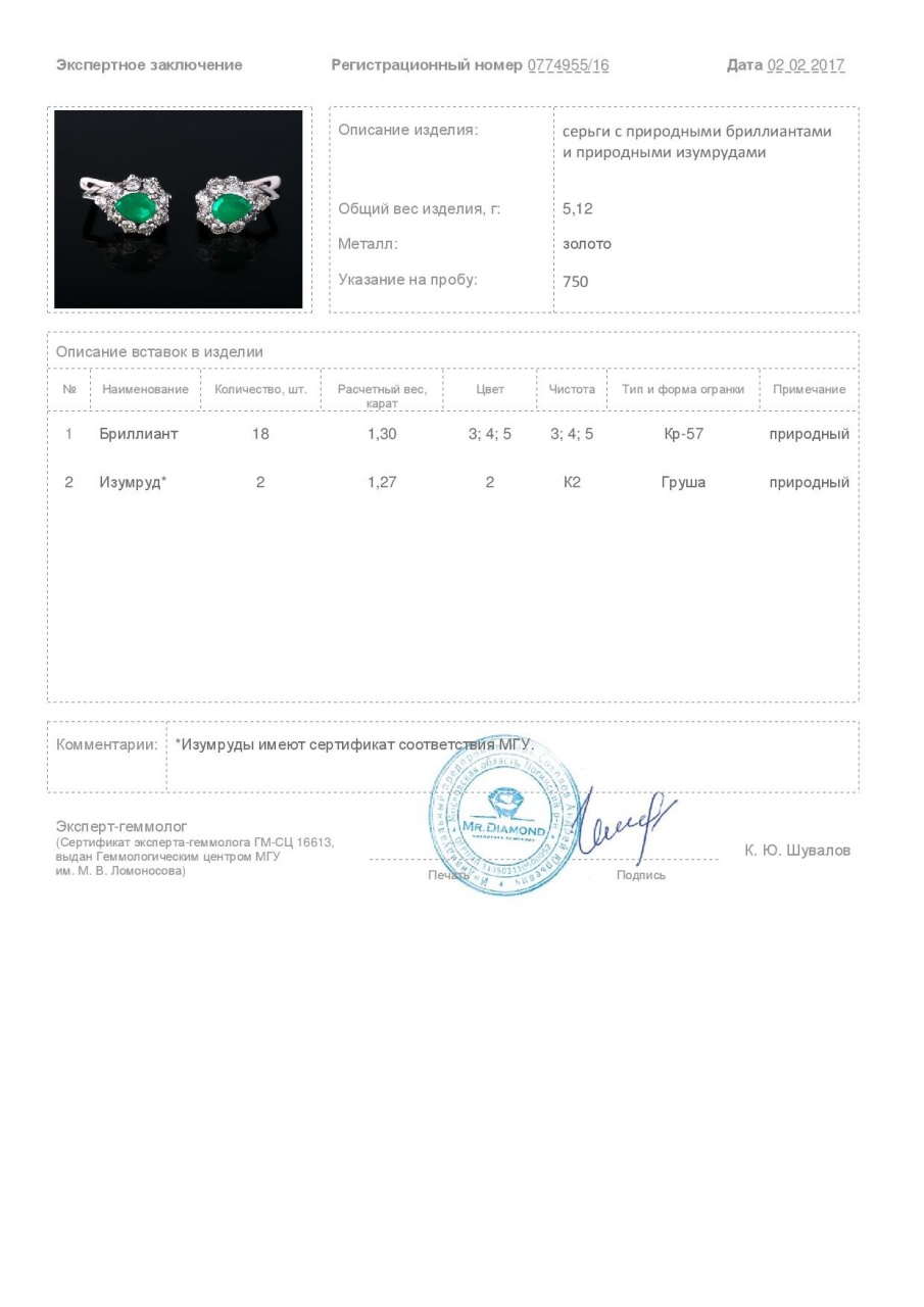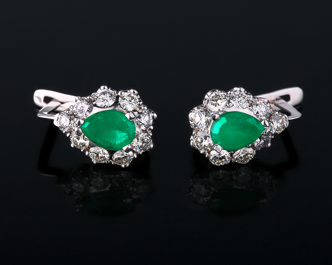 Серьги с бриллиантами 1.26ct и изумрудами 1.30ct