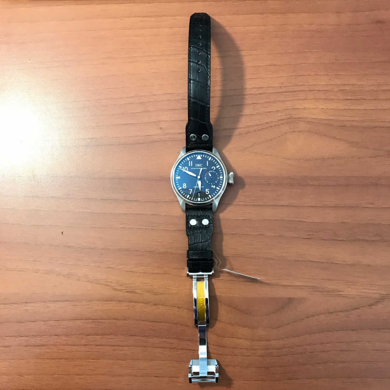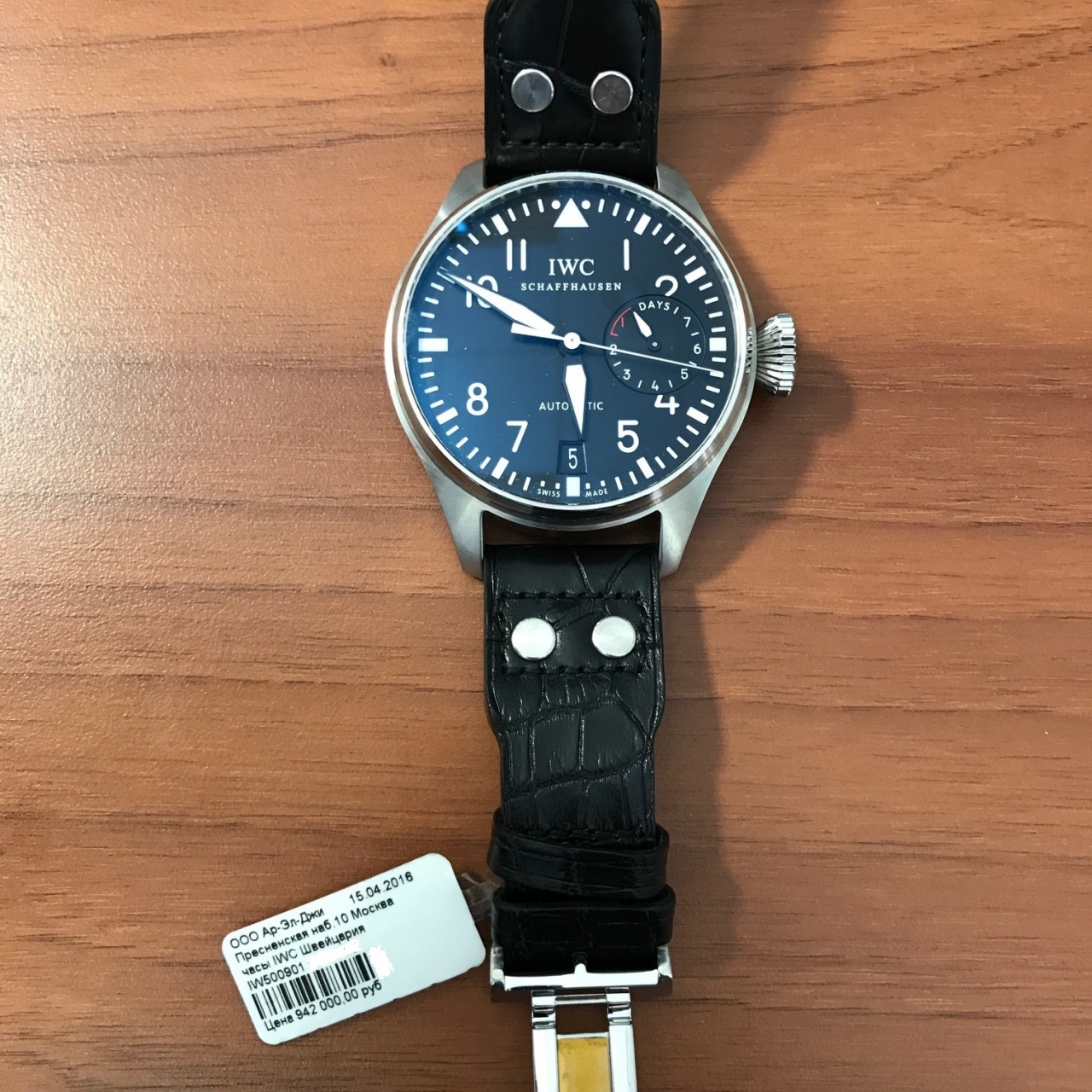 Продаю Big Pilot’s Watch с 7-дневным запасом хода и индикацией даты. IW500901 изготовлен в корпусе из нержавеющей стали диаметром 46 мм, оснащен автоматическим Калибром IWC 51111, кожаным ремешком с раскладывающейся застежкой. Рекомендованная розничная цена в России 942 000 рублей. Часы абсолютно новые, со всеми плёнками и коробками. Часы приобретались в Москве.