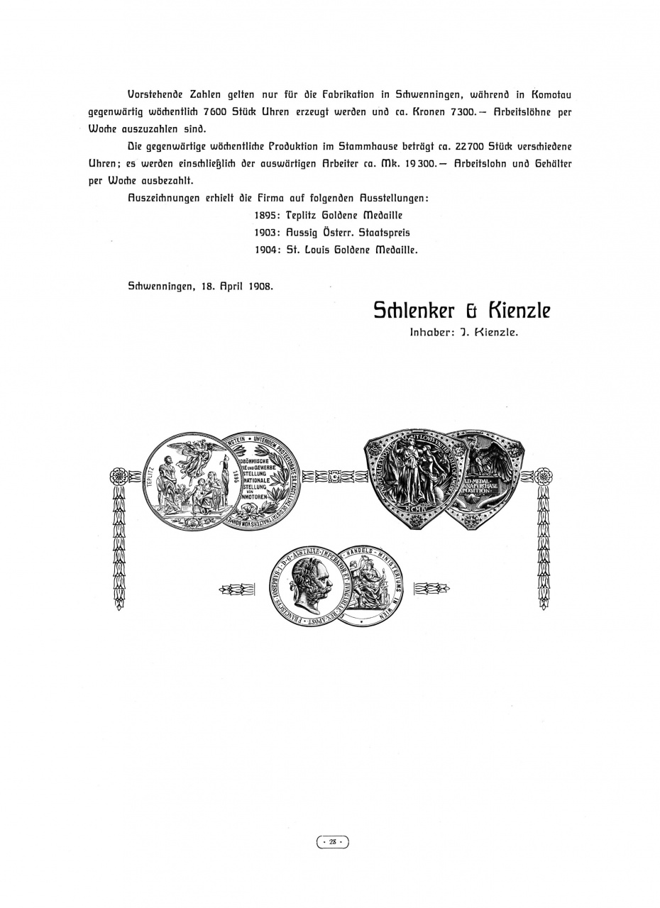 Юбилейная брошюра "Schlenker & Kienzle" за 1908 год