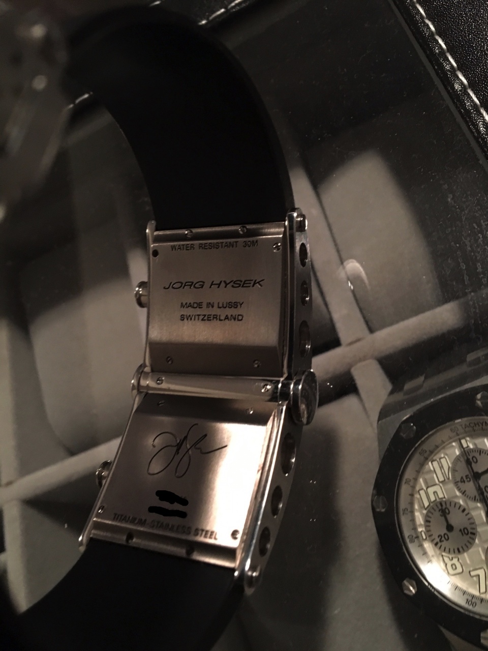 Каучуковый ремешок с фирменной клипсой/застёжкой Hysek из стали.