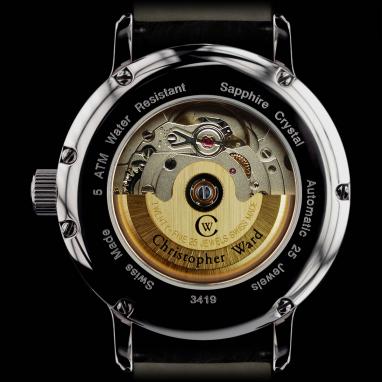 Как и все часы Christopher Ward, C5 Malvern Aviator Mk II произведена в Швейцарии и имеет маркировку "Swiss made".
