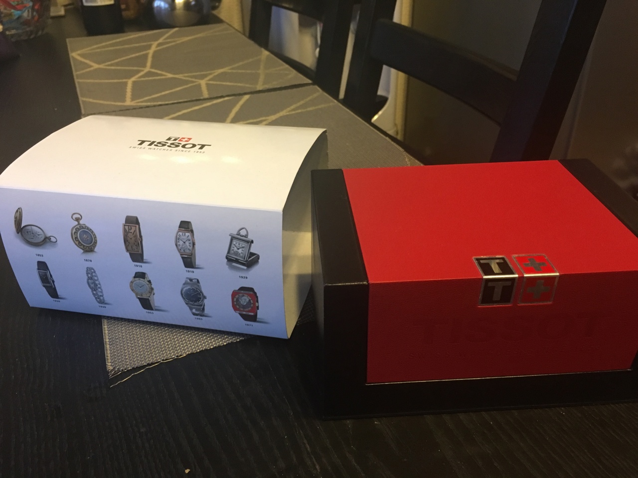Полная заводская комплектация TISSOT: оригинальные часы, фирменная коробка, инструкция, сервисная книжка, роман о часовой фабрике, миникаталог, замшевый фирменный чехол черного цвета.