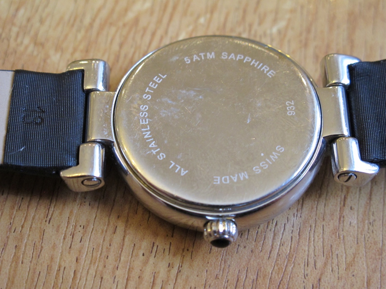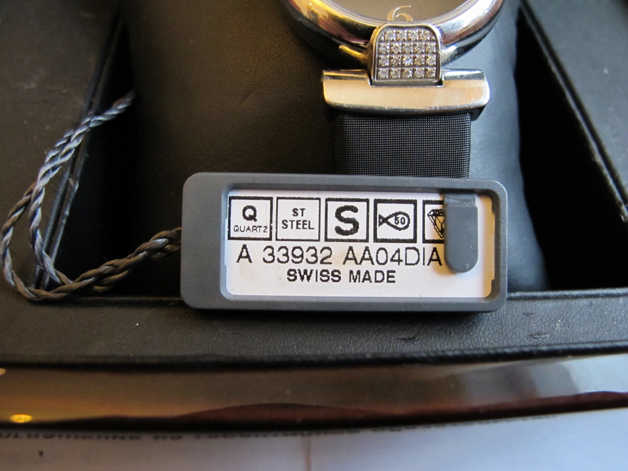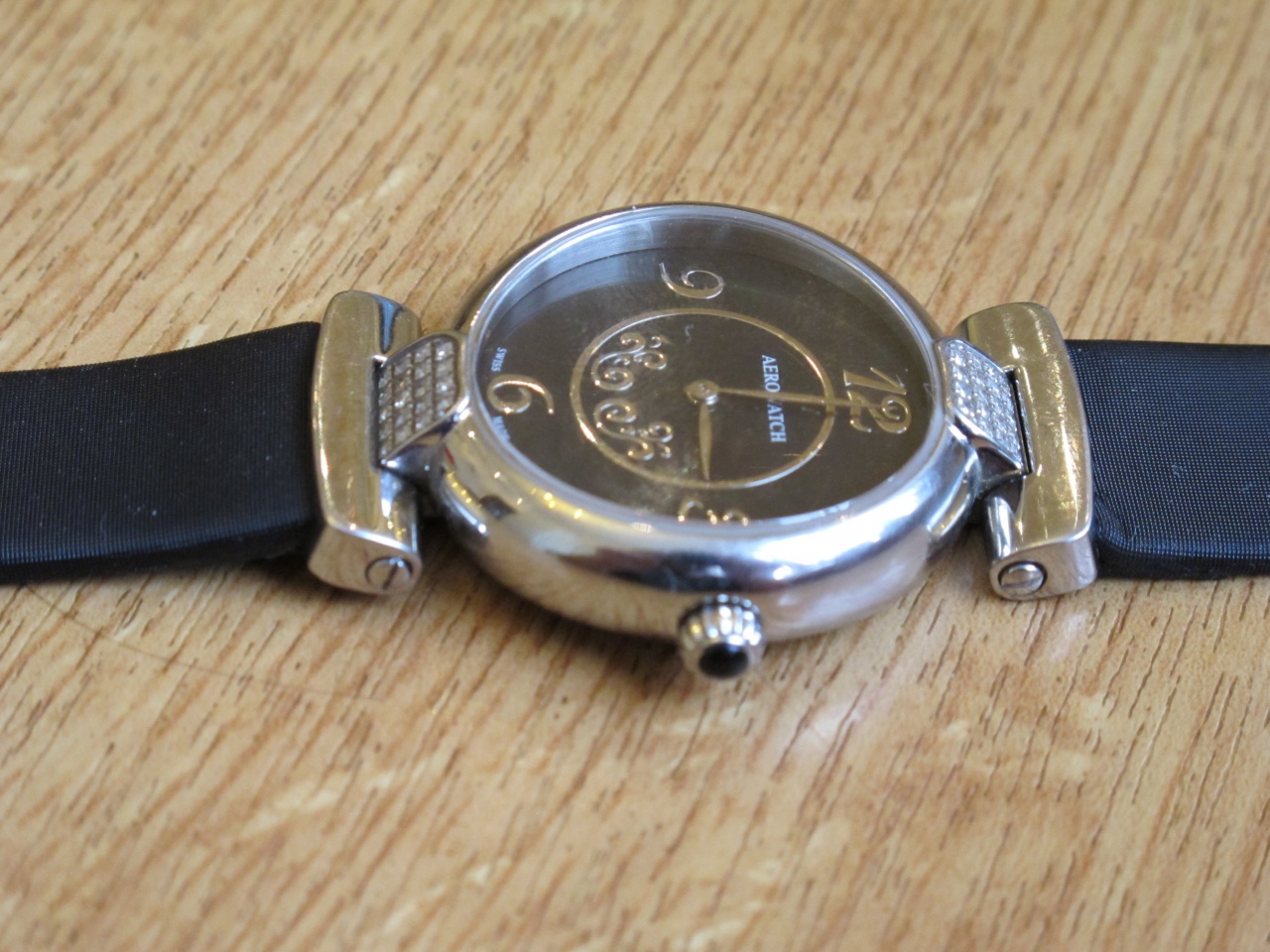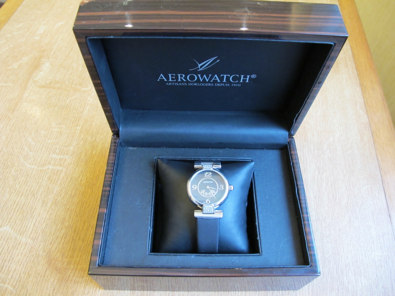 Продаю часы женские Aerowatch Harlequin Daimond Flowers. Swiss made. Ref.№ 33932-AA04-DIA. Куплены в 2011г, носились мало, состояние оч.хорошее. Механизм Ronda 1062 кварцевый. Источник энергии - батарейка (в декабре 2016г установлена новая, срок службы 4-5 лет). Корпус из нержавеющей стали 316L, декорированный 38 бриллиантами 0,29k (на корпусе есть малозаметные потертости и царапинки, которые убираются полировкой). Заводная головка с кабошоном из черного агата. Циферблат из черного натурального перламутра (смотрится очень хорошо, переливается на свету). Цифры - арабские, стальные. Диаметр корпуса - 34 мм., толщина - 9 мм. Стекло - сапфировое, изогнутое (в идеальном состоянии). Ремешок - комбинированный сатин/кожа ручной работы, новый (заменен в январе 2017г, с ним часы на руку не одевались). Водозащита - 5 Atm. Коробка - есть. Отправлю в любой город РФ.