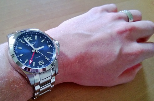 UPD не наяривайте на Конквест и не превозносите его! Это обычные часы Раскрученой марки, ничего более. А если копнуть глубже то сплошной компромисс. Наличие глухой крышки считаю в часах начального уровня плюсом - отделка меха впринципе убогая, так ещё за прозрачную крышку и ротор с Логотипом денег сдерут с честных трудящихся! Резюме : Конквест ГМТ - обычные часы на хорошем механизме с функцией второго часового пояса! Все! Все остальные эпитеты - Фтоппку! Во первых wr50, во вторых как же меня БЕСИТ узкий, мать его дебильный браслет - Ширина всего охренеть аж 19, блдж миллиметров, при общей "кастрюльности" корпуса. Ну почему ширину браслета не сделать 22 мм, как в обычном Конквесте? Дизайнеры как всегда КЛИНИЧЕСКИЕ ИДИОТЫ! Даже постеснялись оформить окошко даты - просто взяли и прорубили канцелярским ножом! А вы говорите: мечта, обладание продуктом. Не будьте жертвой маркетинга! Зачем вам ГМТ? Вы что часовые пояса меняете часто? Нет?! Нравиться синий цвет? Синий Лонжин Конквест на механике с размером корпуса 39 мм и шириной браслета 22 мм ждёт вас. 2824-2 по потребительским качествам особо не хуже, так бонусом ещё и дайверская водозащита wr300! И на руке сидят куда гармоничнее! Это говорю как владелец Синеньньких ГМТ