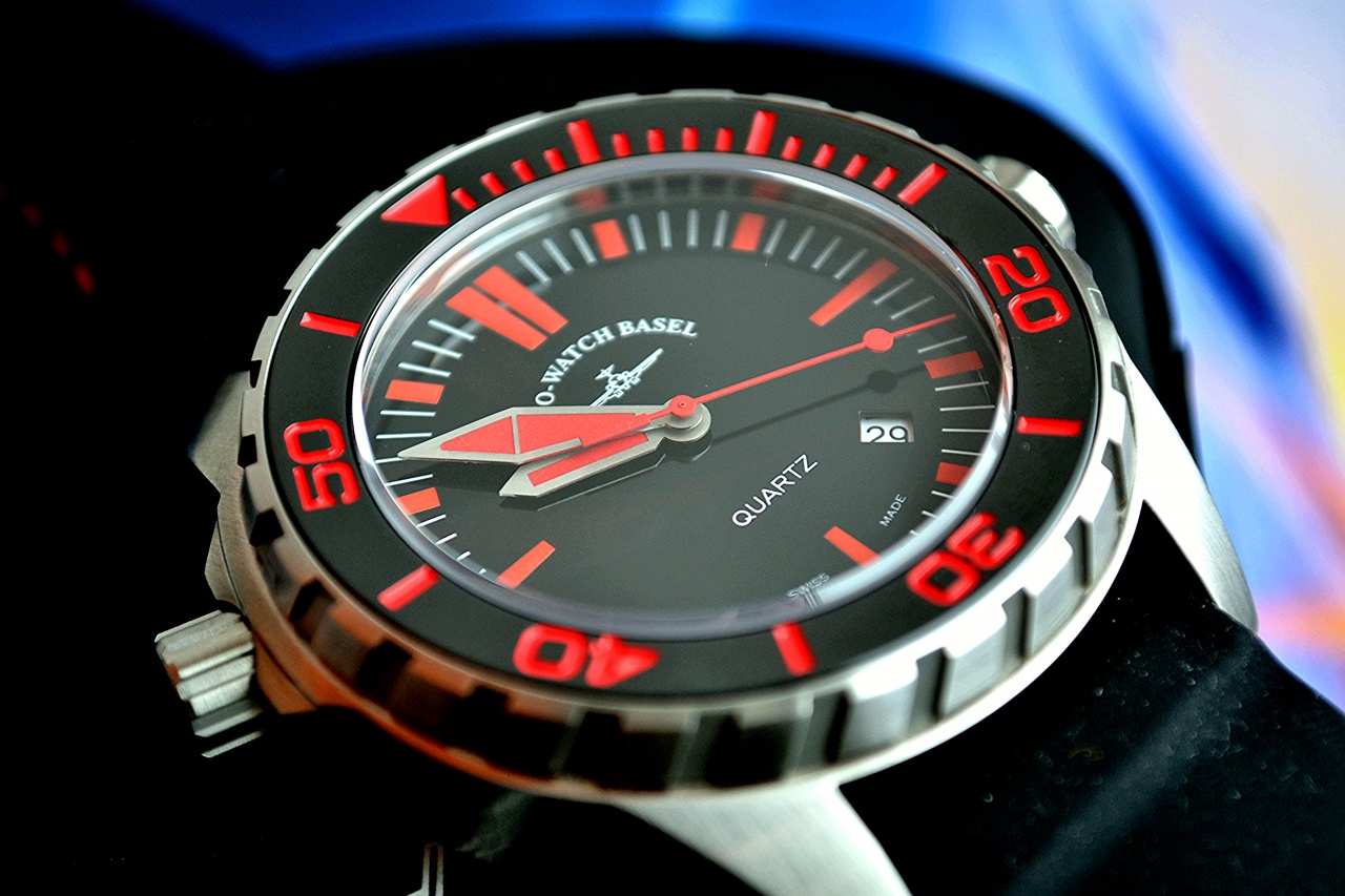Безель стальной, черного цвета с красными метками, поворотный, однонаправленный.
