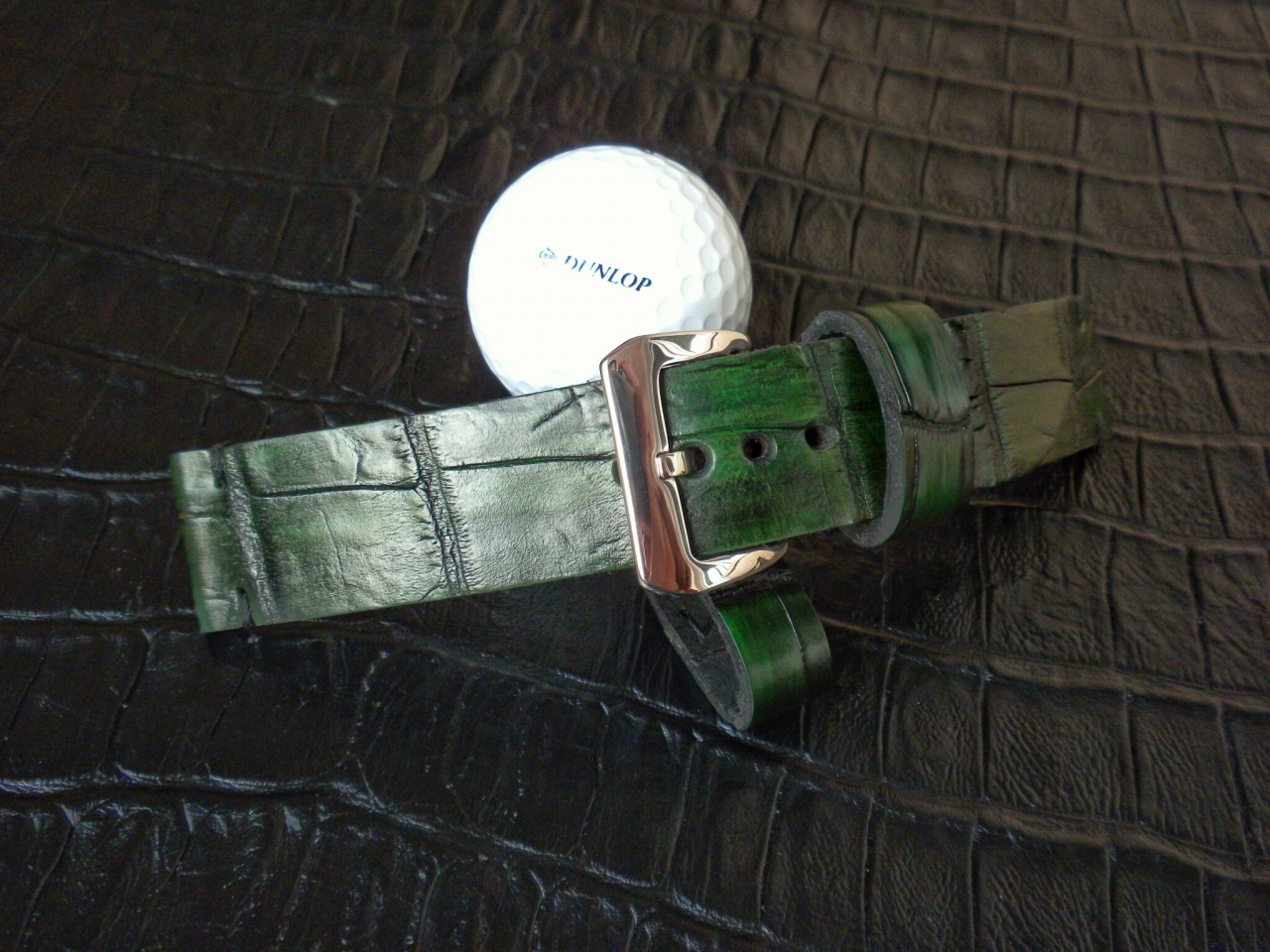 1. Винтажный ремешок из кожи крокодила болотно зеленого цвета
