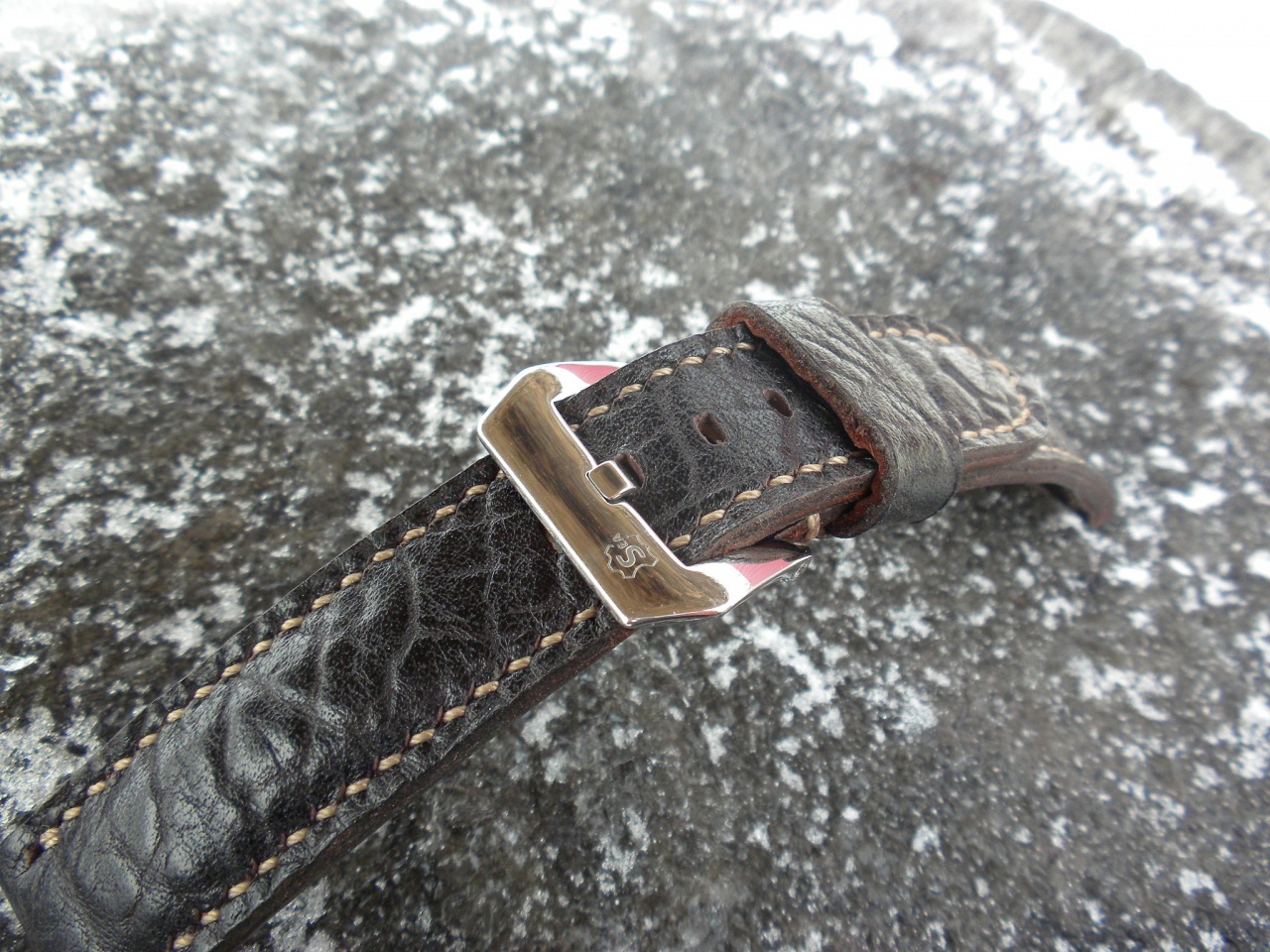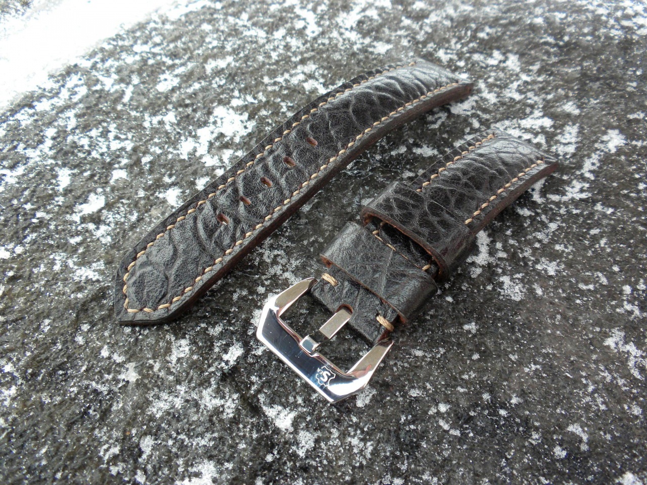2. Ремешок из кожи буйвола с натуральным природным тиснением, темно коричневого цвета
