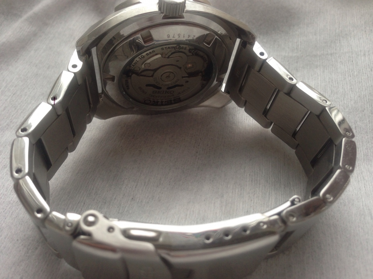 Механизм 4R36 с автоподзаводом и ручным заводом, датой и днём недели. Его работу прекрасно видно через стекло задней крышки.