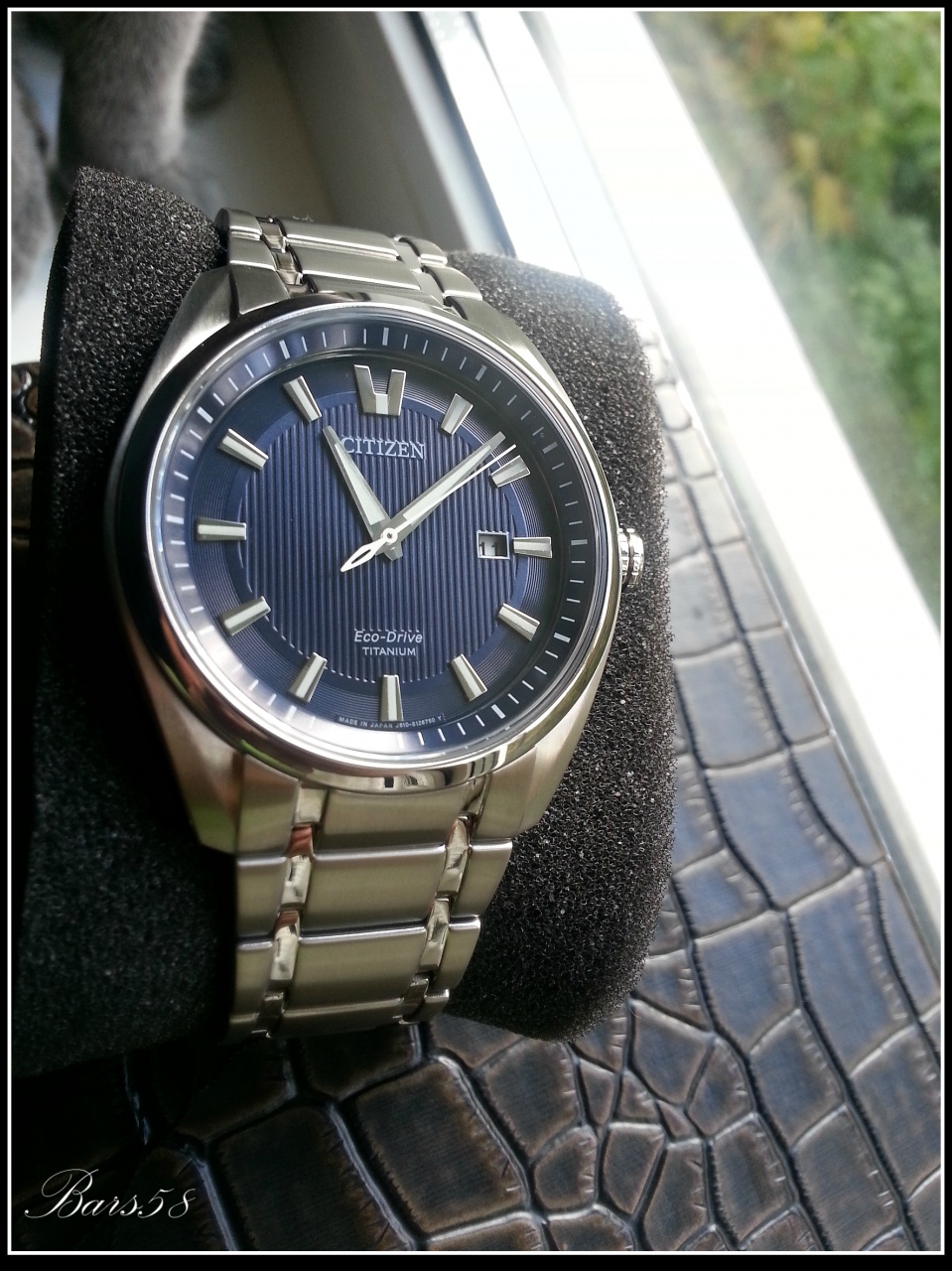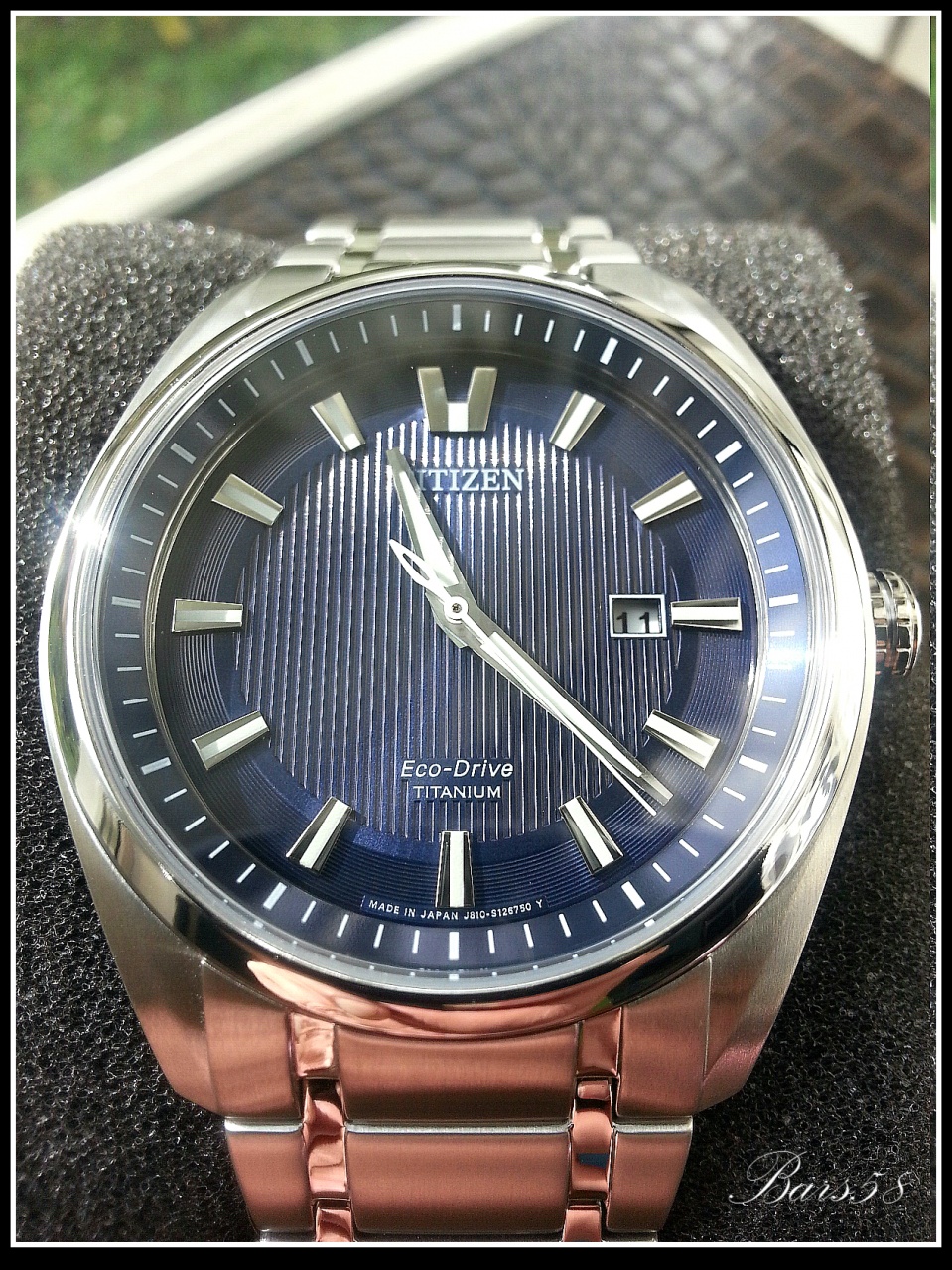 По-настоящему красивый и стильный трёхстрелочник японской сборки, с синим гильошированным циферблатом.
