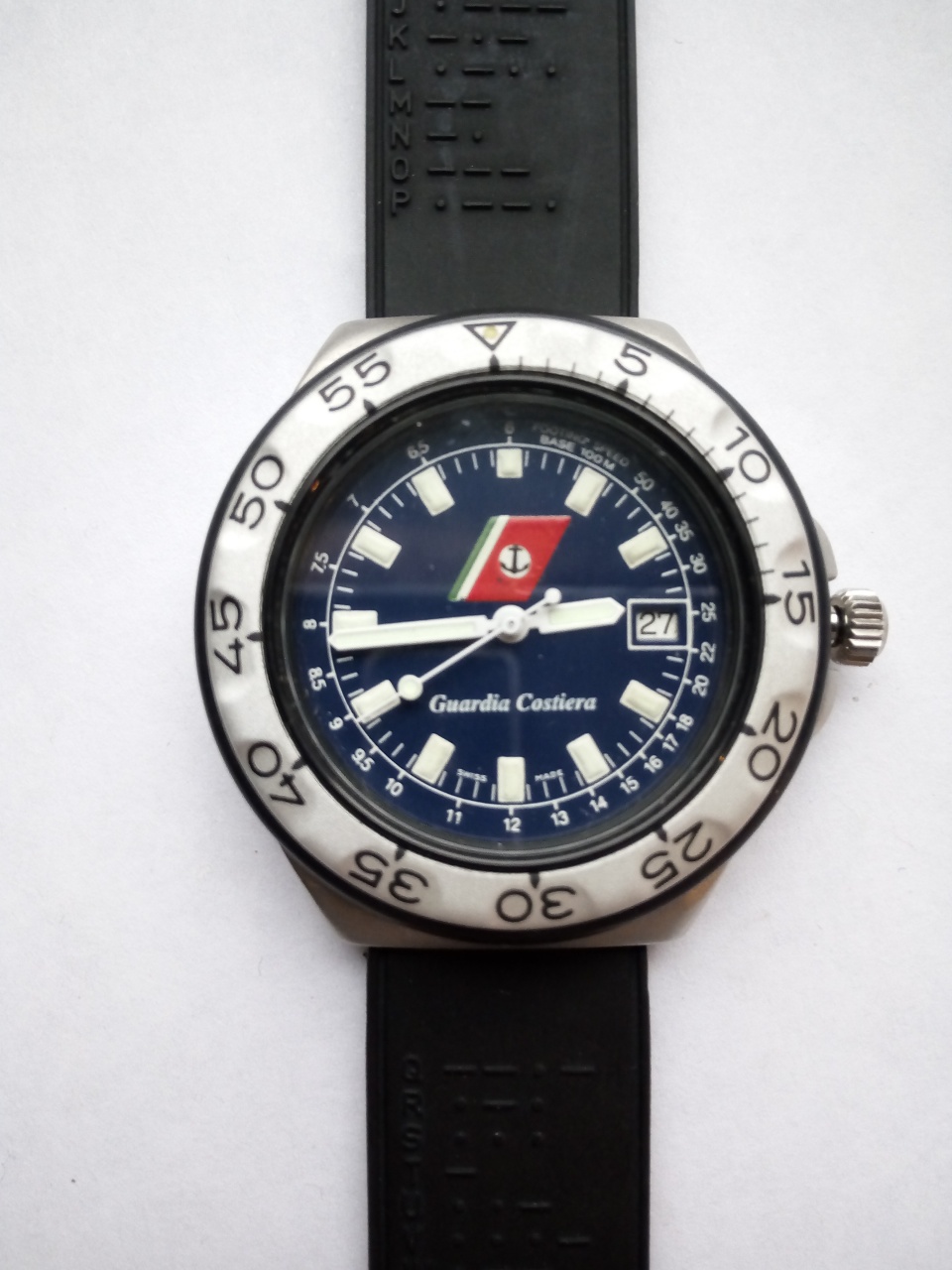 Часы оснащены вращающимся, щелчковым безелем с противоскользящей посаженным резиновым кольцом, для исключения скольжения в воде.