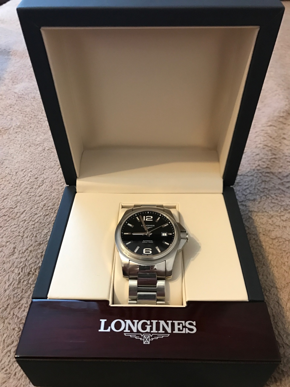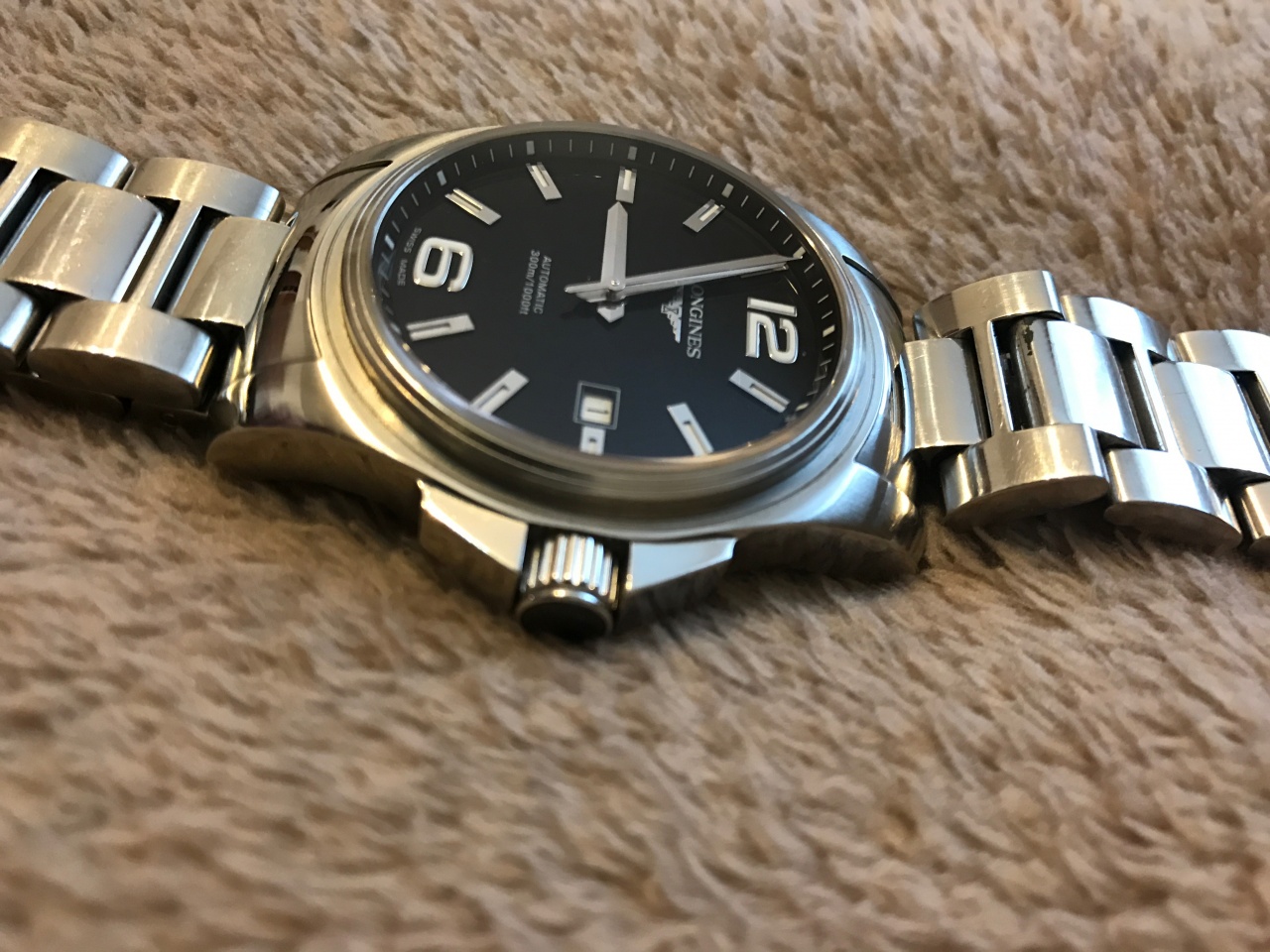 Продам Longines Conquest L3.657.4.56.0 состояние хорошее , следы носки присутствуют, на часах отсутствует керамический безель, бюджетный будет поставить стальной ( при репортаже в Санкт-Петербурге мастер сказал что можно поискать стальной в районе 2000-3000 р., но так как я живу не в СПб и не москве то возможности такой не имею). В наличии коробка и доп. звенья.