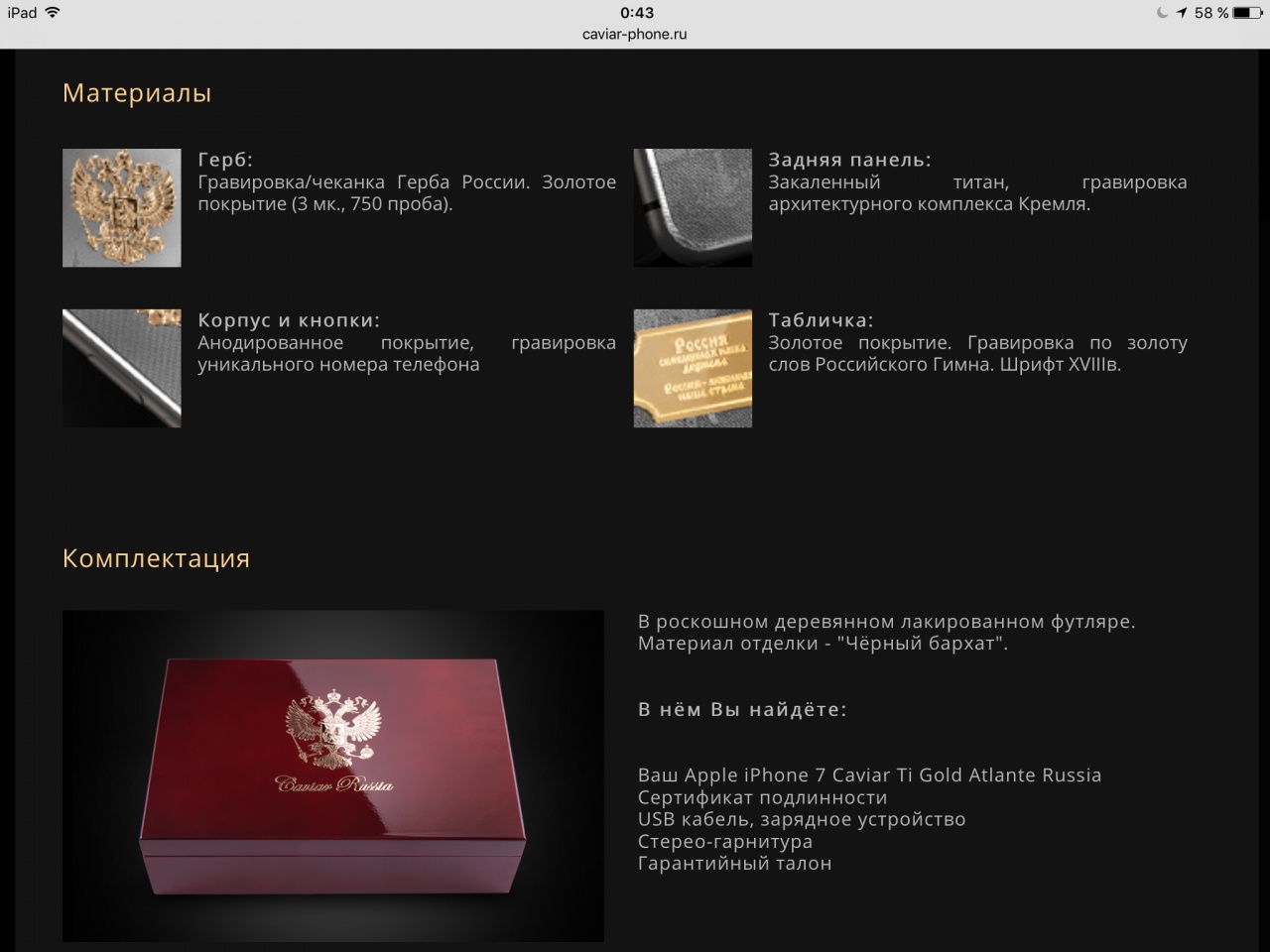 Золотой Apple iPhone 6 Caviar Ti Gold Atlanta Russia 128