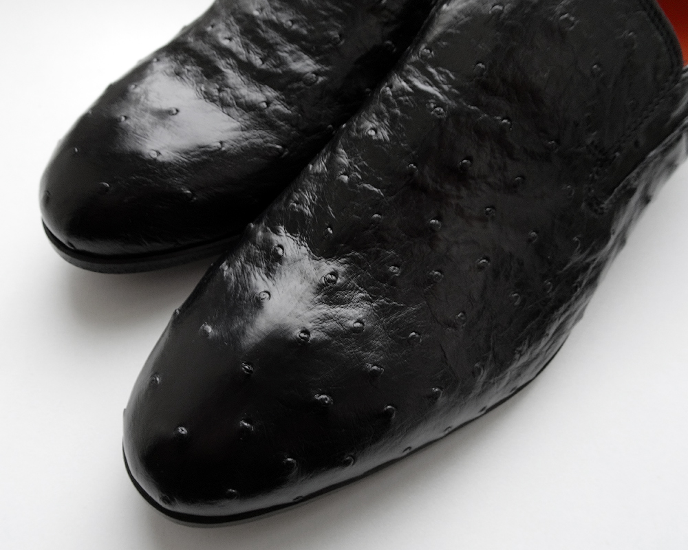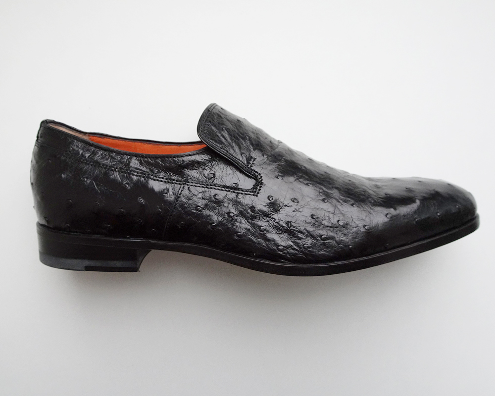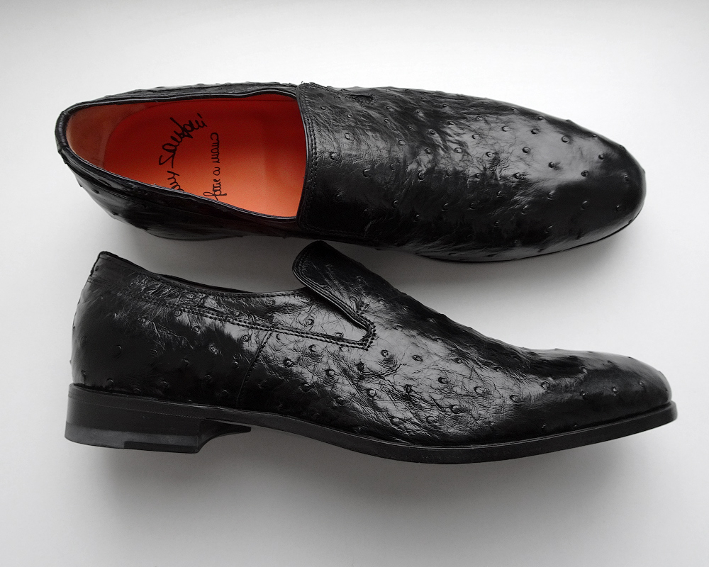 SANTONI шикарные мужские мокасины - черная кожа страуса, р.41-42!