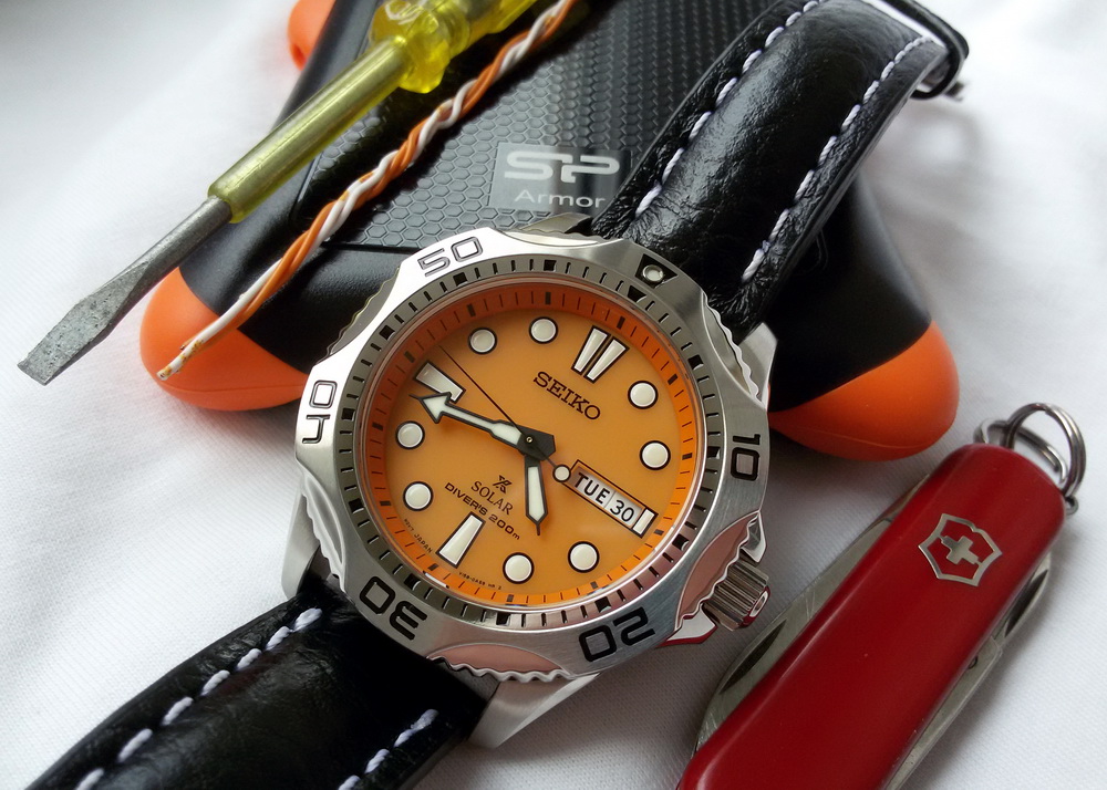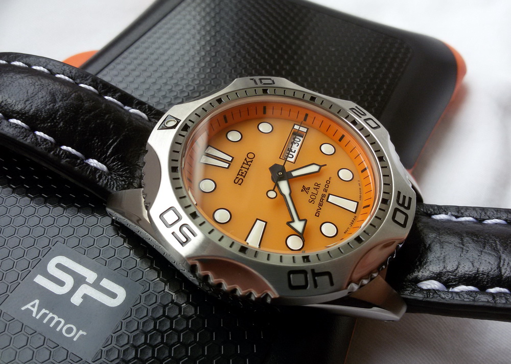 Редкие оранжевые Seiko solar diver's 200m (SNE109P1).