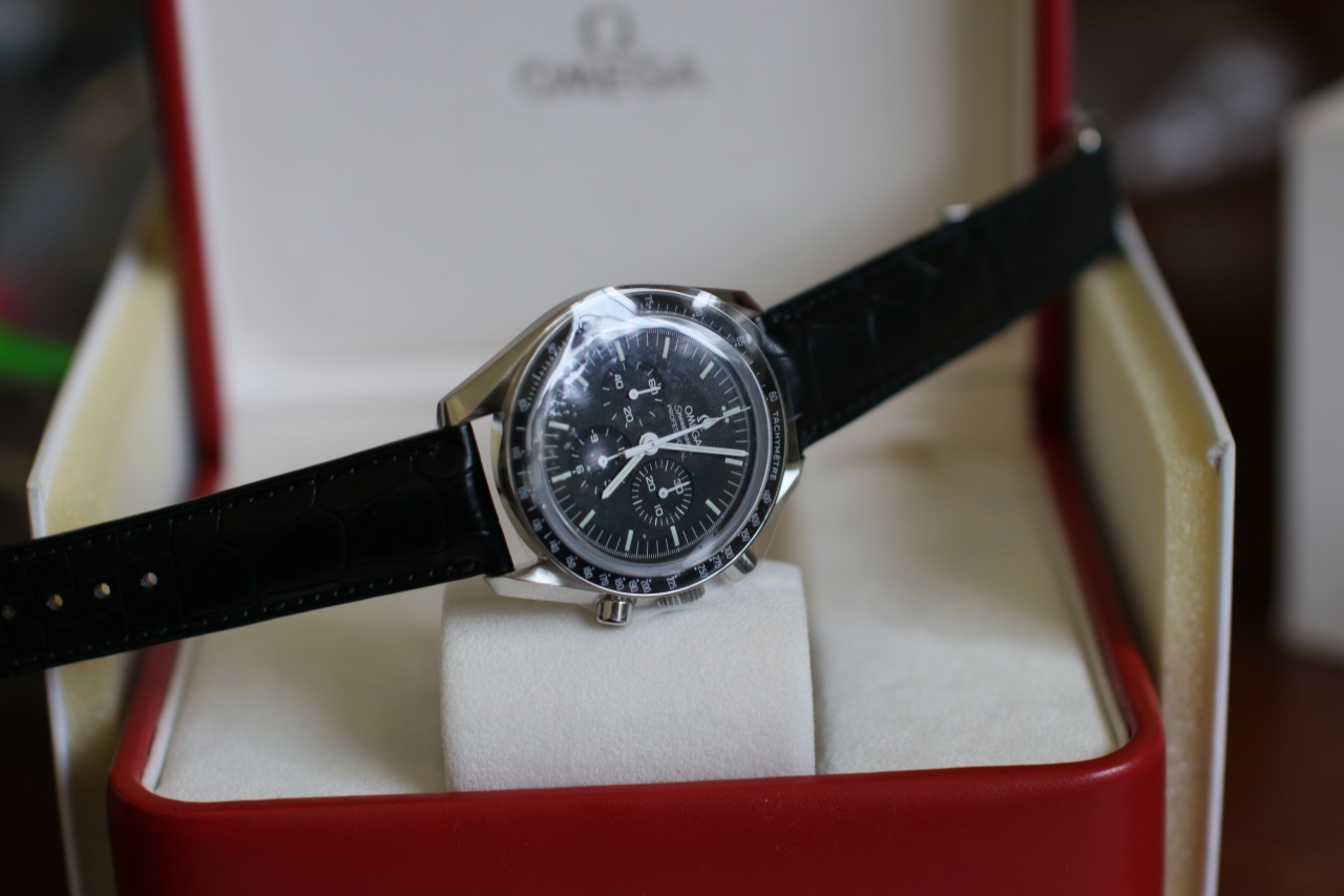 Большая редкость Omega Speedmaster MOON WATCH ( Крокодил , Черный циферблат , Прозрачная крышка)