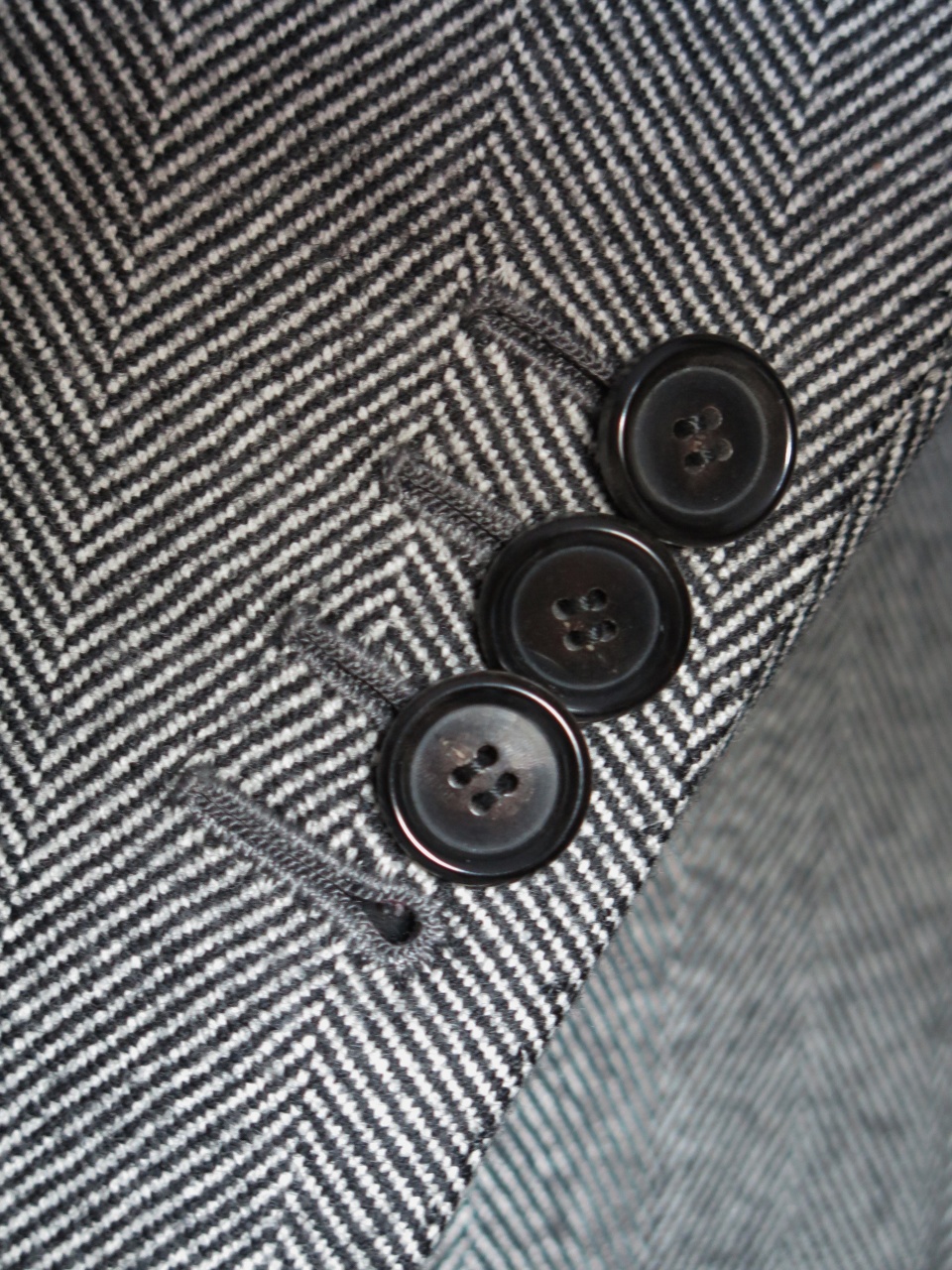 Застёгивается на пуговицы, изготовленные из рога буйвола. Пуговичные петли обметаны вручную, на рукавах сделаны рабочие петли, позволяющие при необходимости расстегнуть все четыре пуговицы.