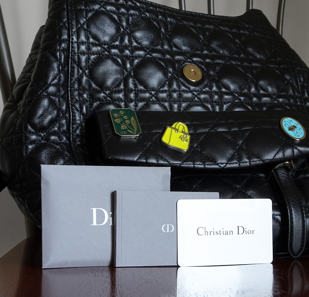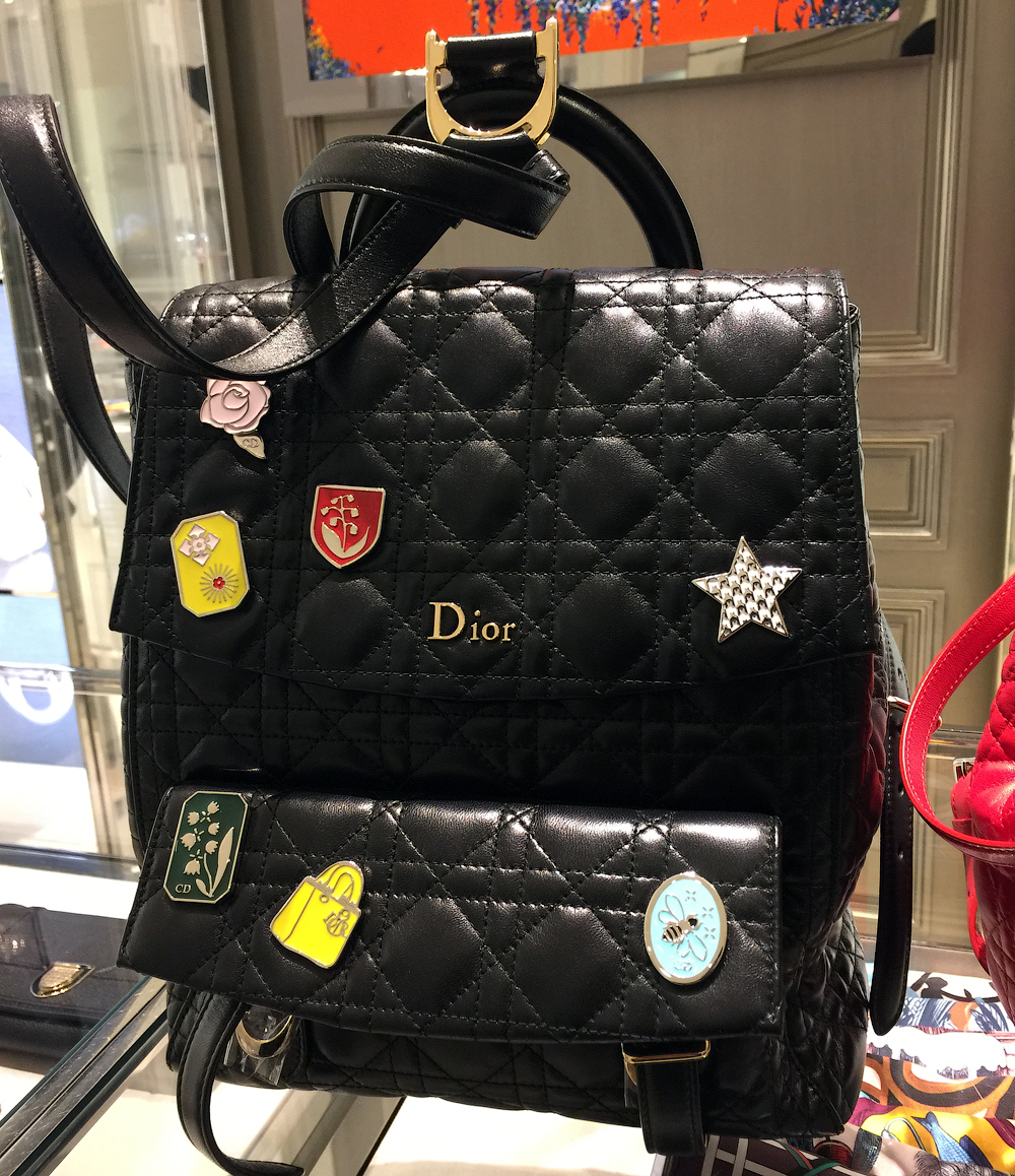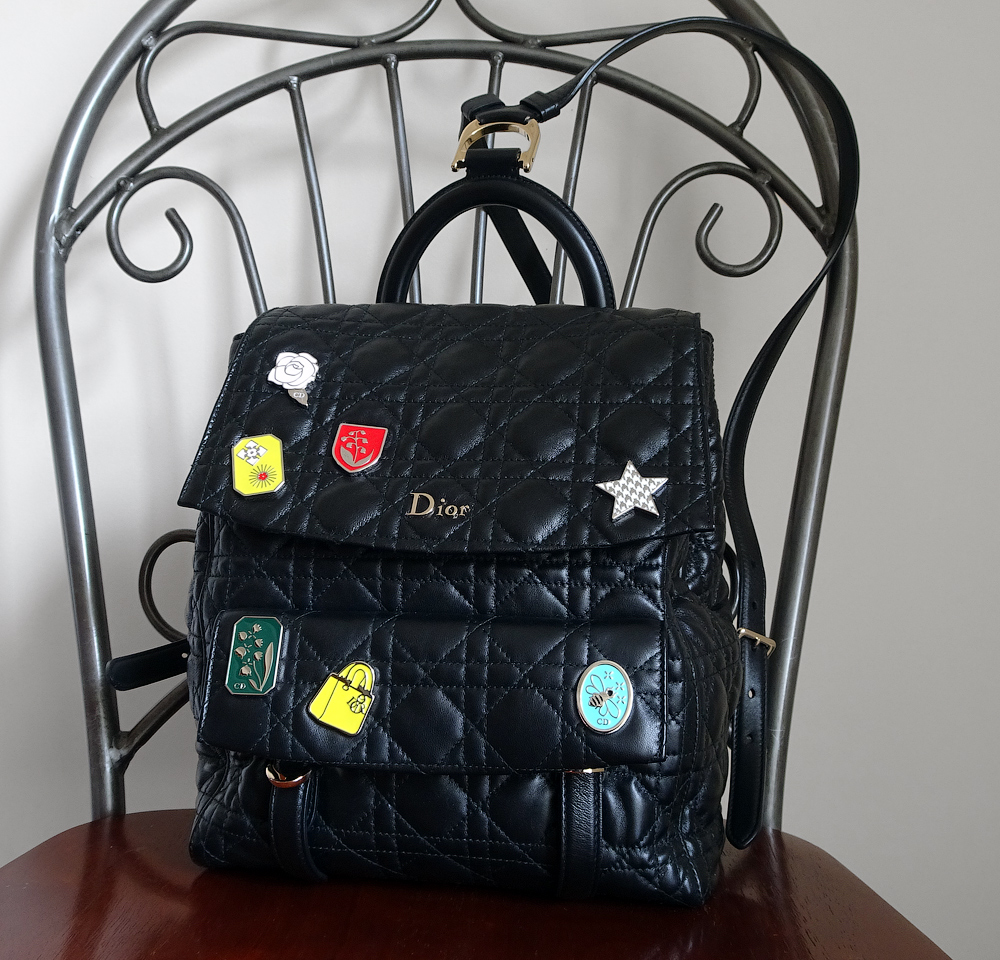 Лимитированная версия! Рюкзак украшен значками Dior Lucky Badges. Значки My Lady Dior Lucky Badges - новинка Dior, это разнообразные значки из металла с эмалью, разной формы, цветов и дизайна, которые теперь продаются в бутиках, их можно покупать и по разному комбинировать с целью украшения и индивидуализации сумок, одежды и аксессуаров. Почитать можно здесь: