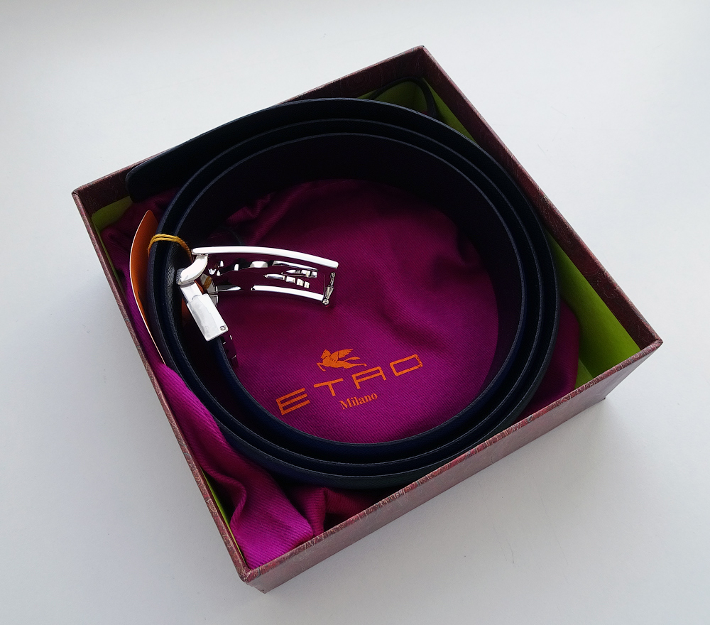 ETRO стильный МУЖСКОЙ двусторонний ремень, синяя + черная кожа!