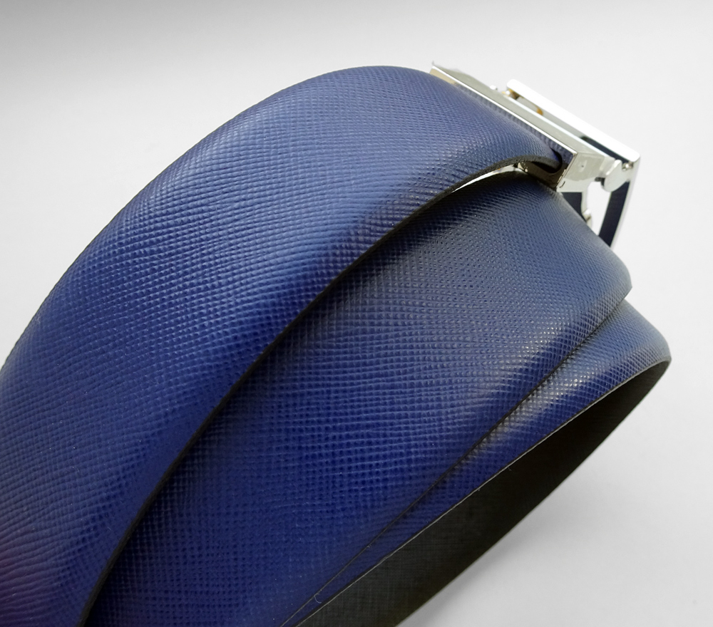 Ремень полноценно двусторонний (пряжка поворачивается).