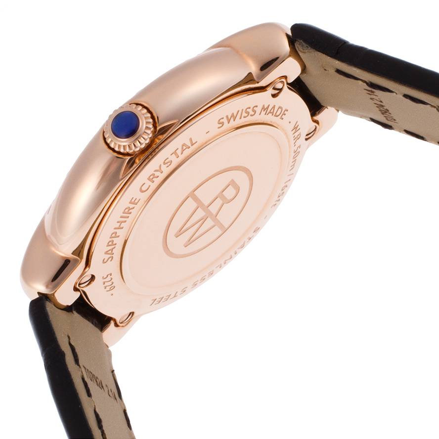 Диаметр корпуса: 29 мм. Благодаря своему ярко выраженному женскому стилю, модель Jasmine распускается самым красивым цветком на запястье своей хозяйки.Эта великолепная модель играет со всей гаммой ценных материалов: розовое золото придает женственность корпусу, заводной головке и циферблату, вплоть до окаймления окошка указания даты. Ободок грациозно украшен 28 сверкающими бриллиантами. Браслет из черной кожи Крокодила изящно огибает запястье. Синие стрелки нежно касаются классических римских цифр черного цвета