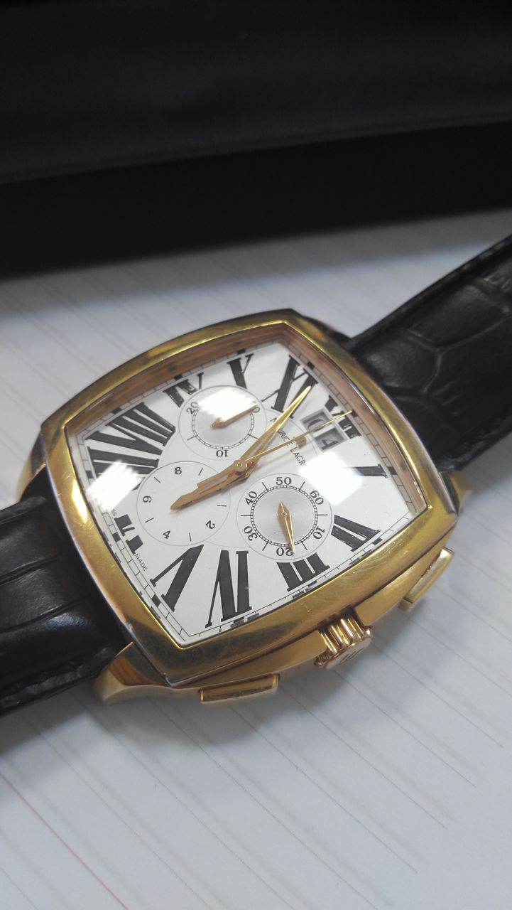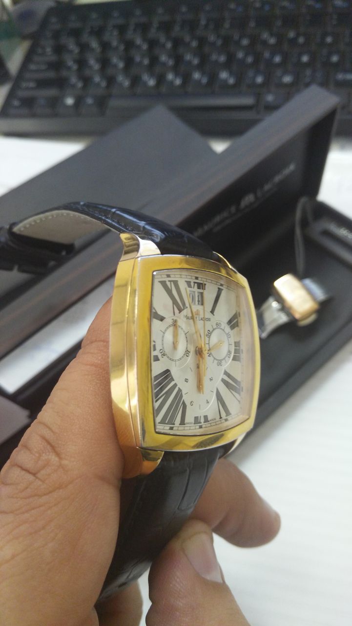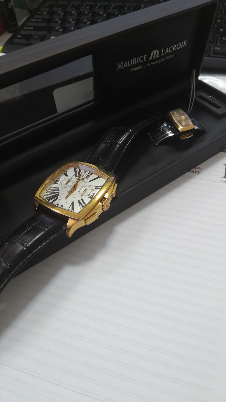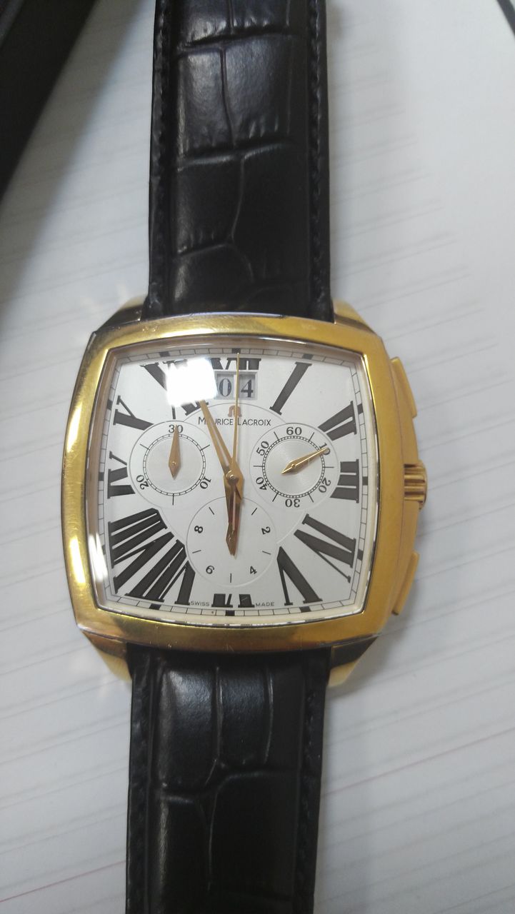 Продаются оригинальные швейцарские мужские часы Maurice Lacroix Miros MI5017-PP011-111 . Кварцевые, хронограф, стекло сапфировое, большая дата, позолоченные. Размер часов: 36 х 39 мм. Водозащита: 50 M. Б/у, состояние хорошее, есть следы носки в виде царапин на корпусе, устраняются полировкой. Ремешок не родной, но сохранилась родная клипса.