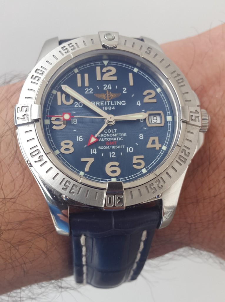 Продам Breitling Aeromarine Colt GMT с синим гильошированным циферблатом!