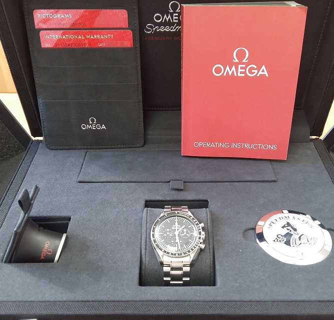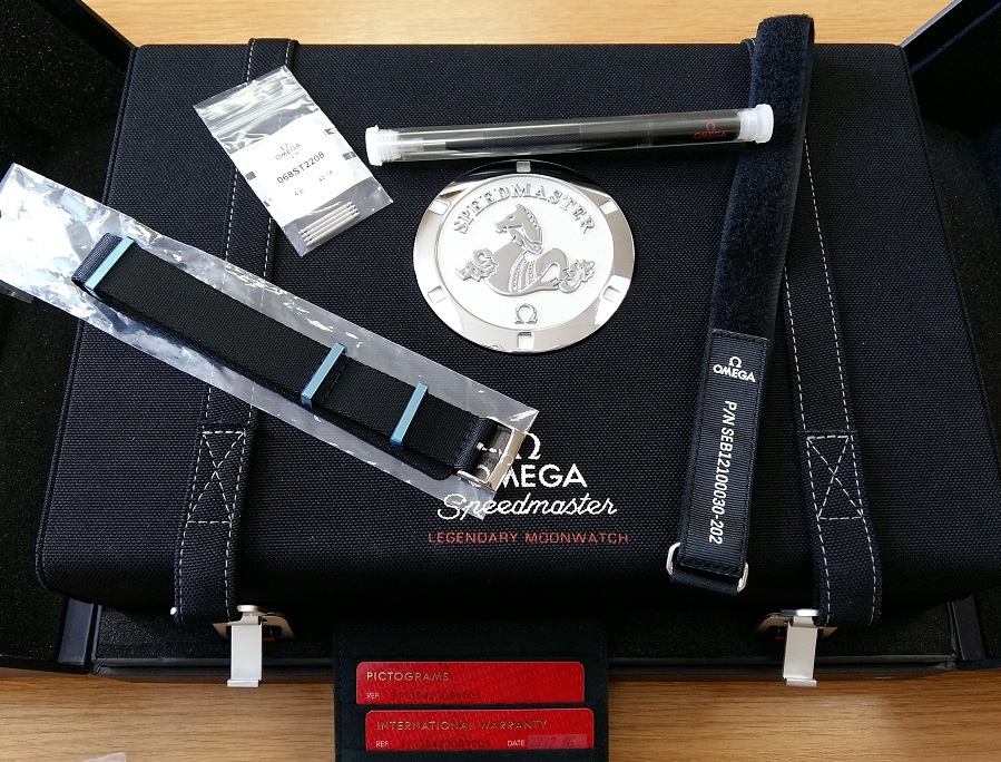 Основу этого хронографа составляет механический калибр 1861 – легендарный часовой механизм OMEGA с ручным заводом, который побывал с человеком на Луне. В специальный подарочный футляр, в котором предлагаются эти часы, также входят ремешок "NATO", ремешок для астронавтов и инструмент для замены браслета!