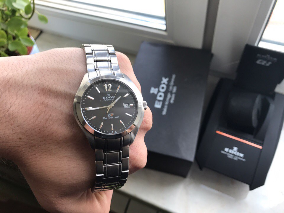 Классный вариант надежной швейцарской механики с высокой водозащитой от именитого бренда за скромные деньги. Отличные часы на каждый день, очень удобно и органично сидят на запястье. По стилистике сочетаются с любым гардеробом, будь то костюм или же шорты с поло. Состояние практически идеал, полнейший комплект.