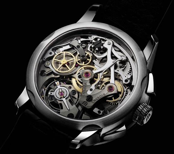 Изящный скелетонизированный механизм Masterpiece Le Chronographe Squelette прочерчен линиями модерна. “Красивая” монохромная гамма объединяет стальной полированный корпус и сложный циферблат в единое архитектурное целое.