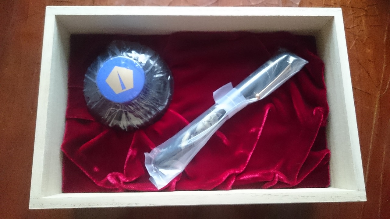 Ручка поставляется в элегантной бархатной деревянной коробочке и включает бутылку чернил Namiki.