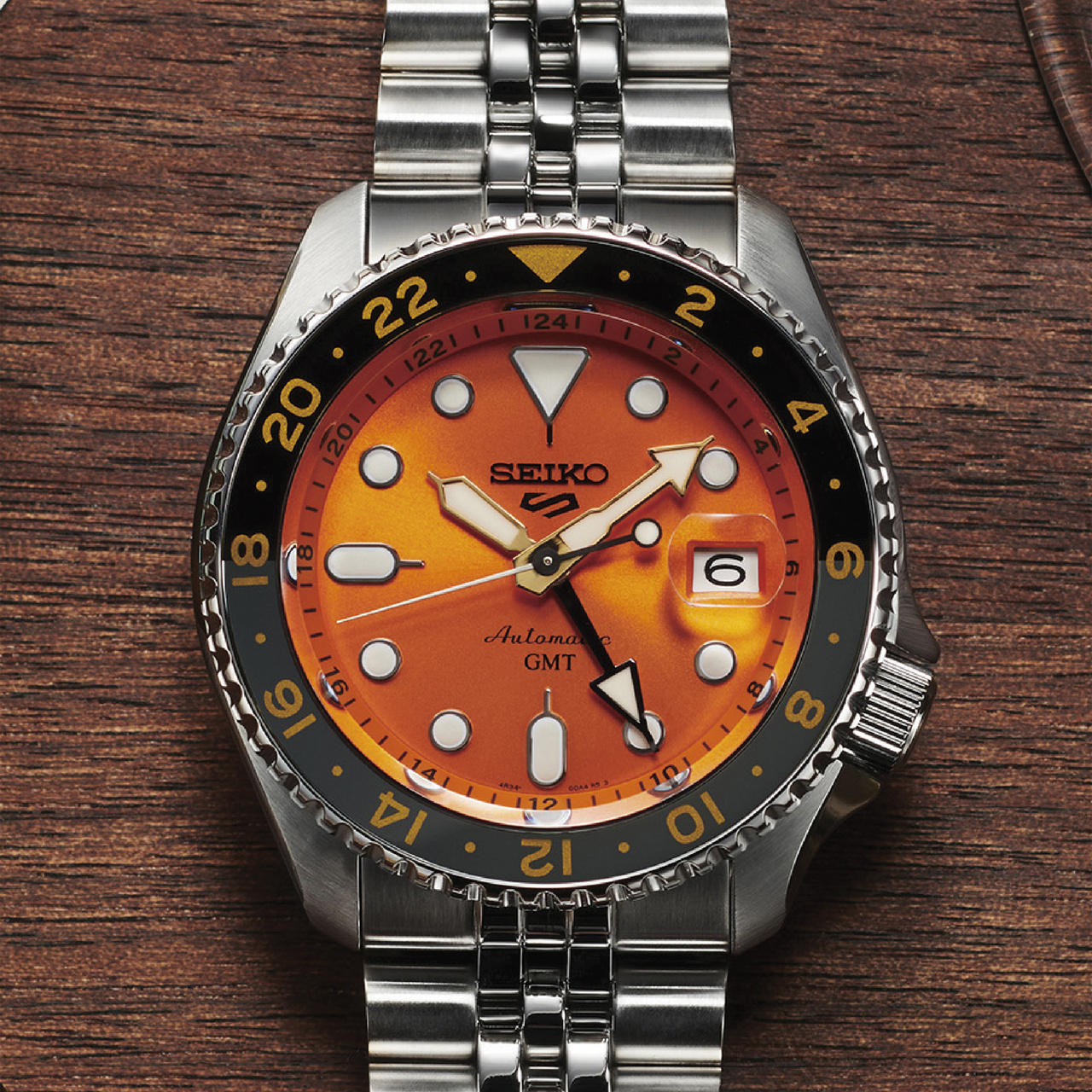 Материал с Hodinkee о новых Seiko 5S в корпусе SKX (SKK001,003,005) с функцией GMT. Механизм на базей всё той же серии 4R - 4R34. Но, теперь со стрелкой второго часового пояса и безелем на 24 часа. В первом выпуске Бэтмен, Оранжевый и Серо-черный. Вероятно, в будущем увидим Старбакс и Пепси. Хотя, безели для Пепси уже давно хомажат. Нет индикатора дня недели, но присутствует циклоп на дате. Браслет в стиле юбилейный. Симпатичные часы получились.