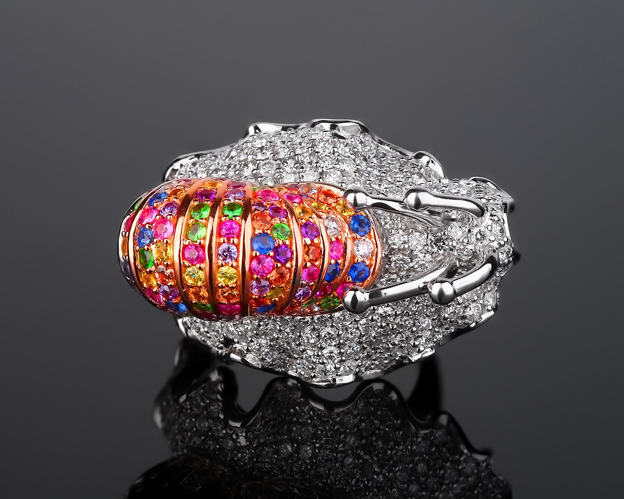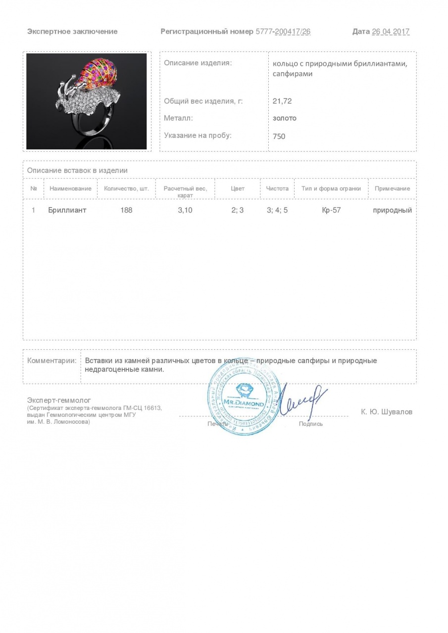 Представляем вашему вниманию фееричное золотое кольцо с бриллиантами 3.1ct, сапфирами и цветными камнями от всемирно известного бренда Safo Joailleri.