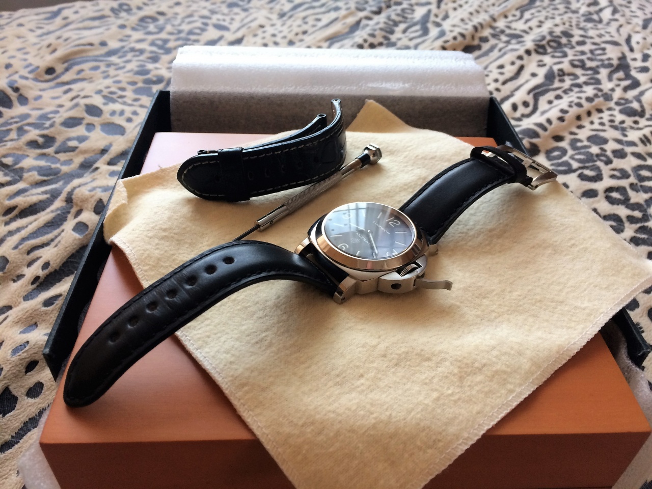 Ставшие уже легендарными часы Панерай база лого. Отличное состояние. Родные ремни новые. В подарок новый! ремень от штайна! Так же в подарок нормальный б/у аллигатор от панерая! и 2 ремня ручной работы из кожи слона и бегемота (без бакли).
