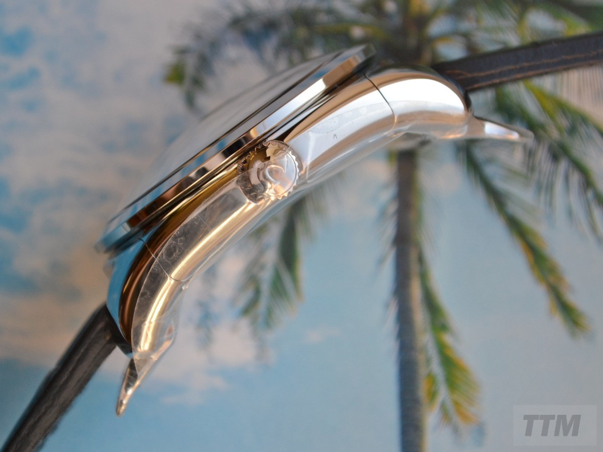 толщина корпуса 10 мм, толщина корпуса с выпуклым стеклом 13,5 мм.