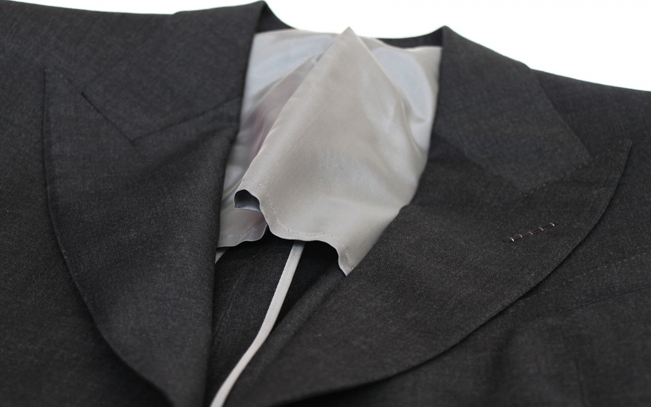 Модель приталеная, что вкупе с широкими лацканами очень красиво подчеркивает силуэт