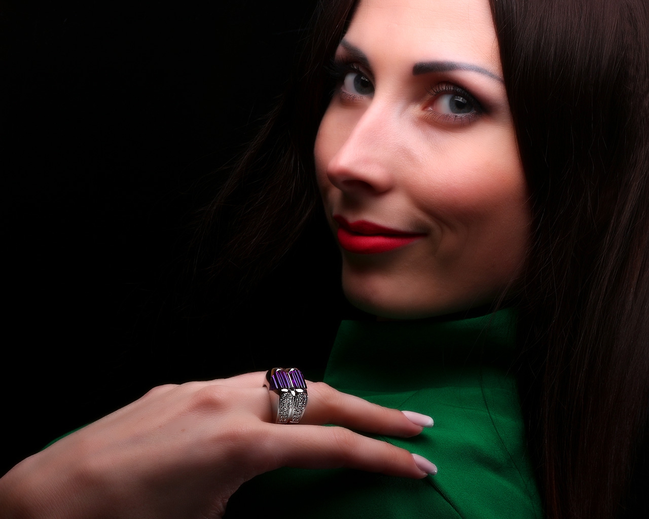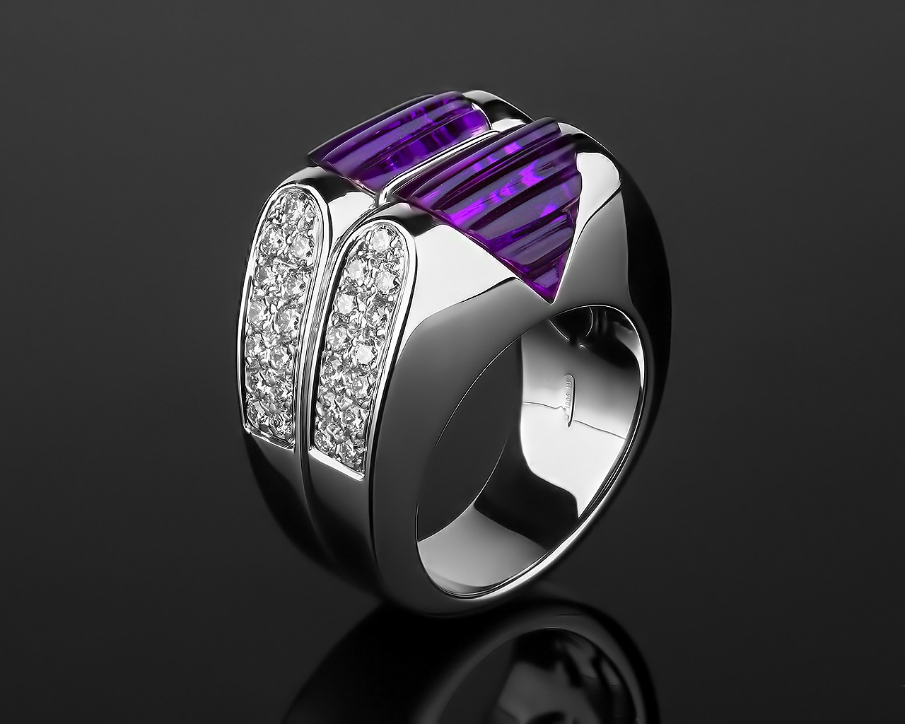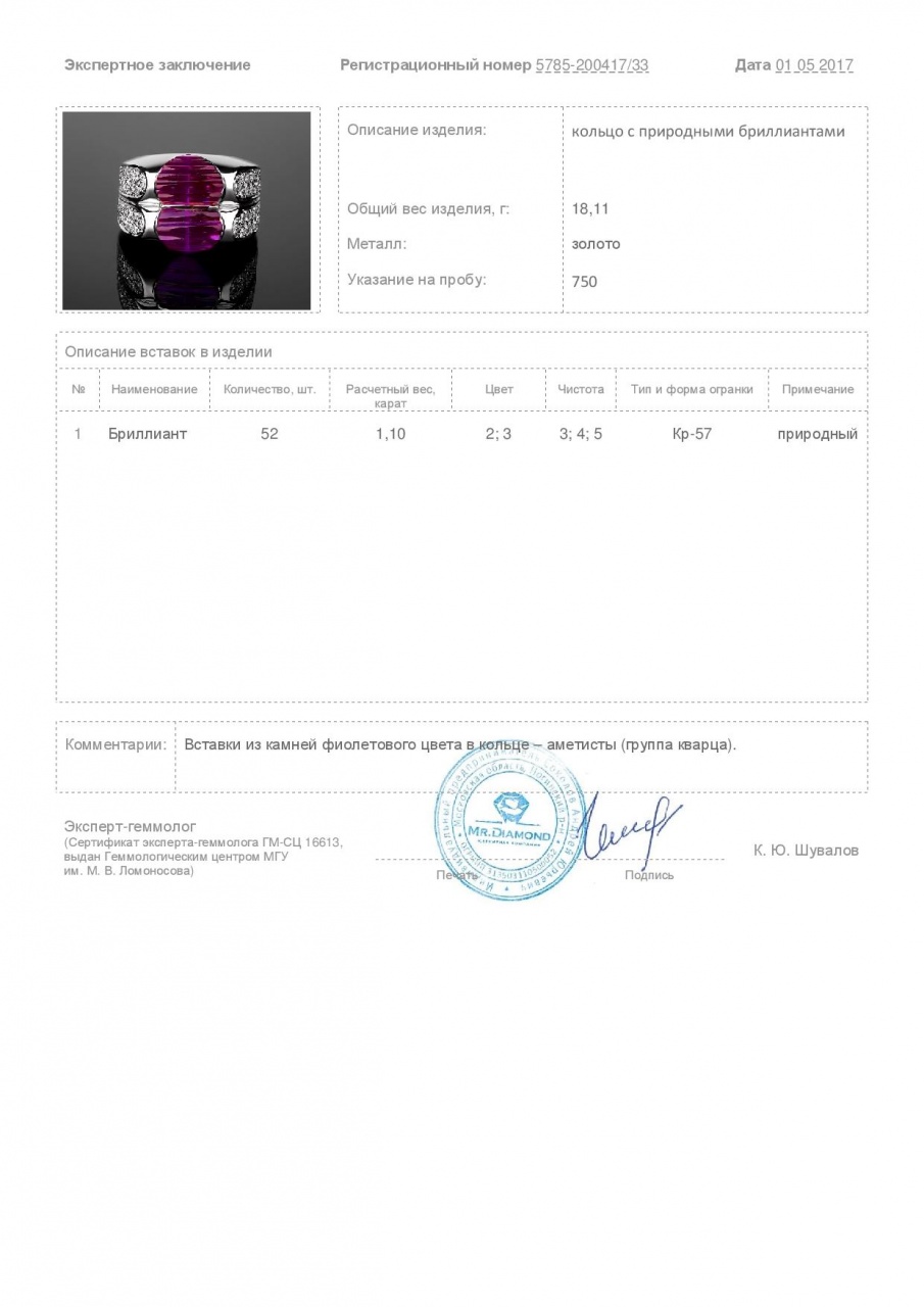 | золотое кольцо kria, кольцо с аметистами, кольцо с бриллиантами |