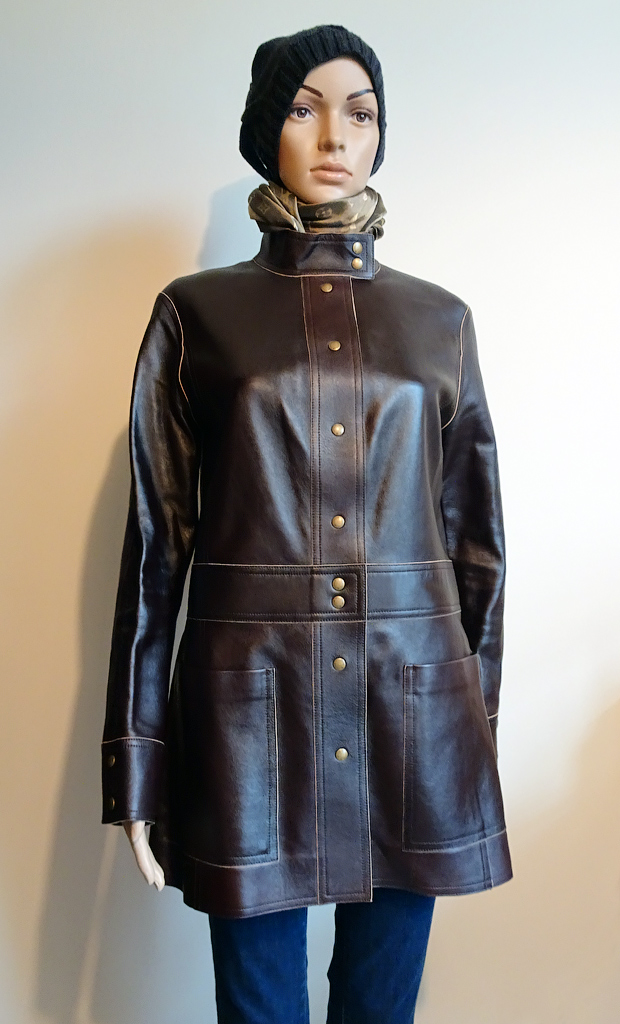 Фасон: кожаное полупальто (удлиненная кожаная куртка-френч).