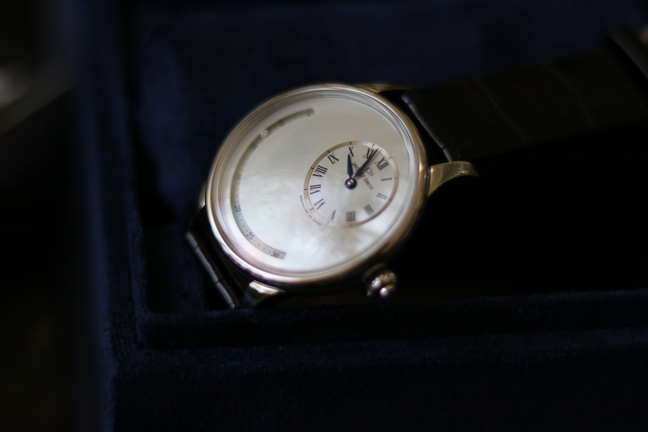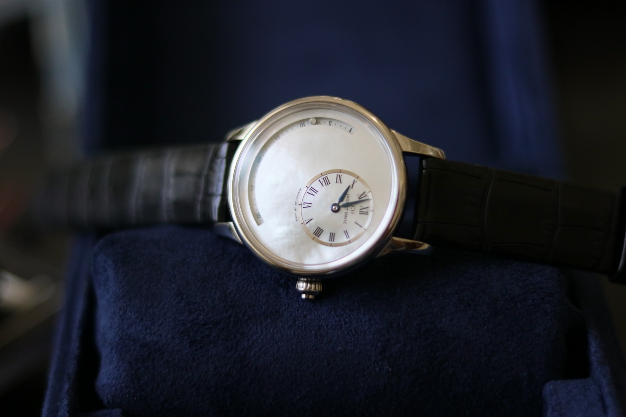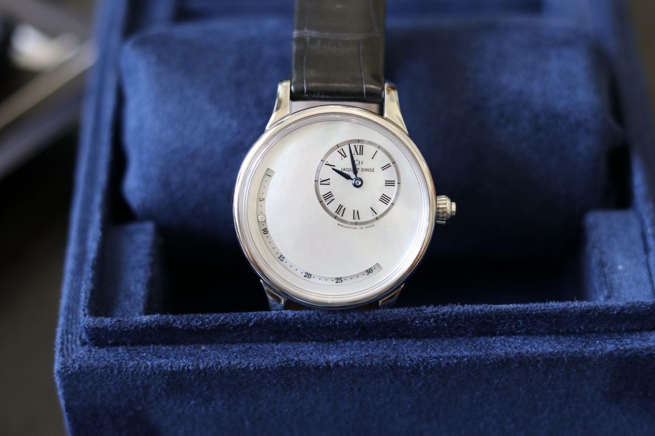 Jaquet Droz Petite Heure Minute Date Astrale ( Жемчужный циферблат, Ретроградная дата)