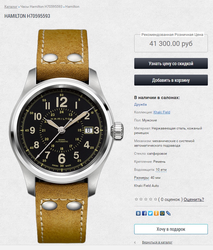 [МУЖСКИЕ] HAMILTON Khaki Field / Механика с черным лицом