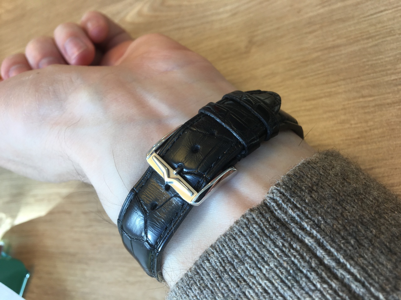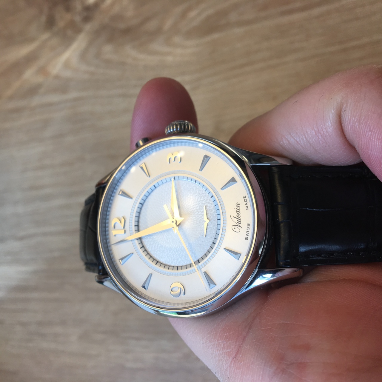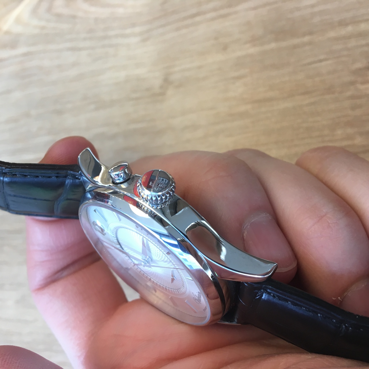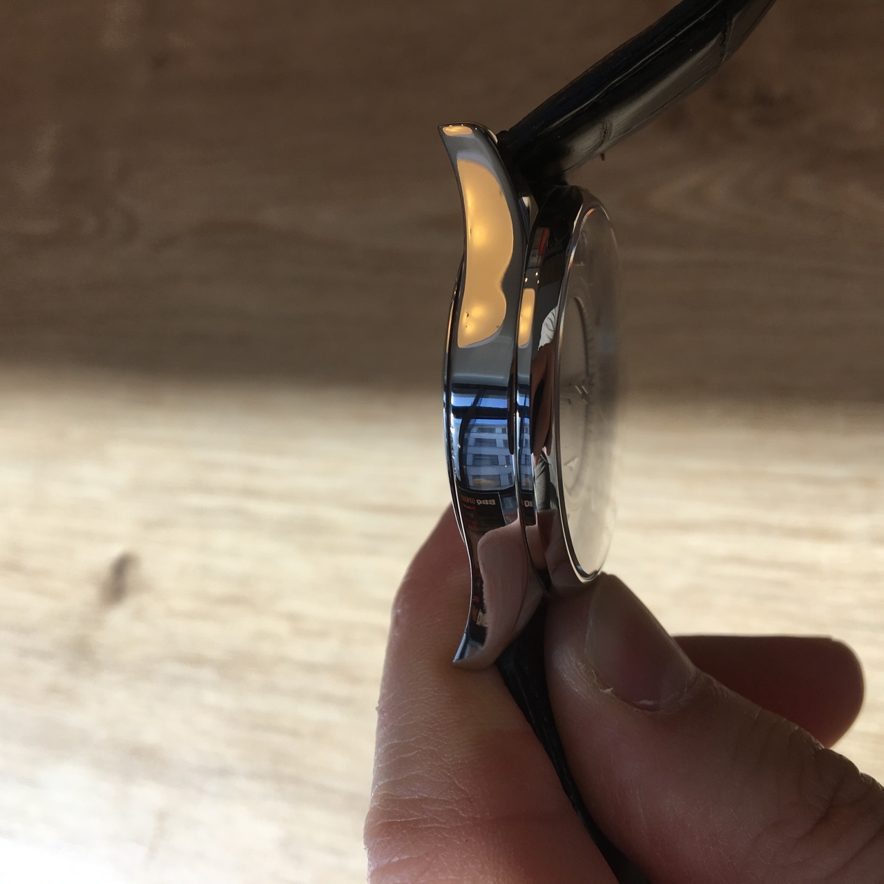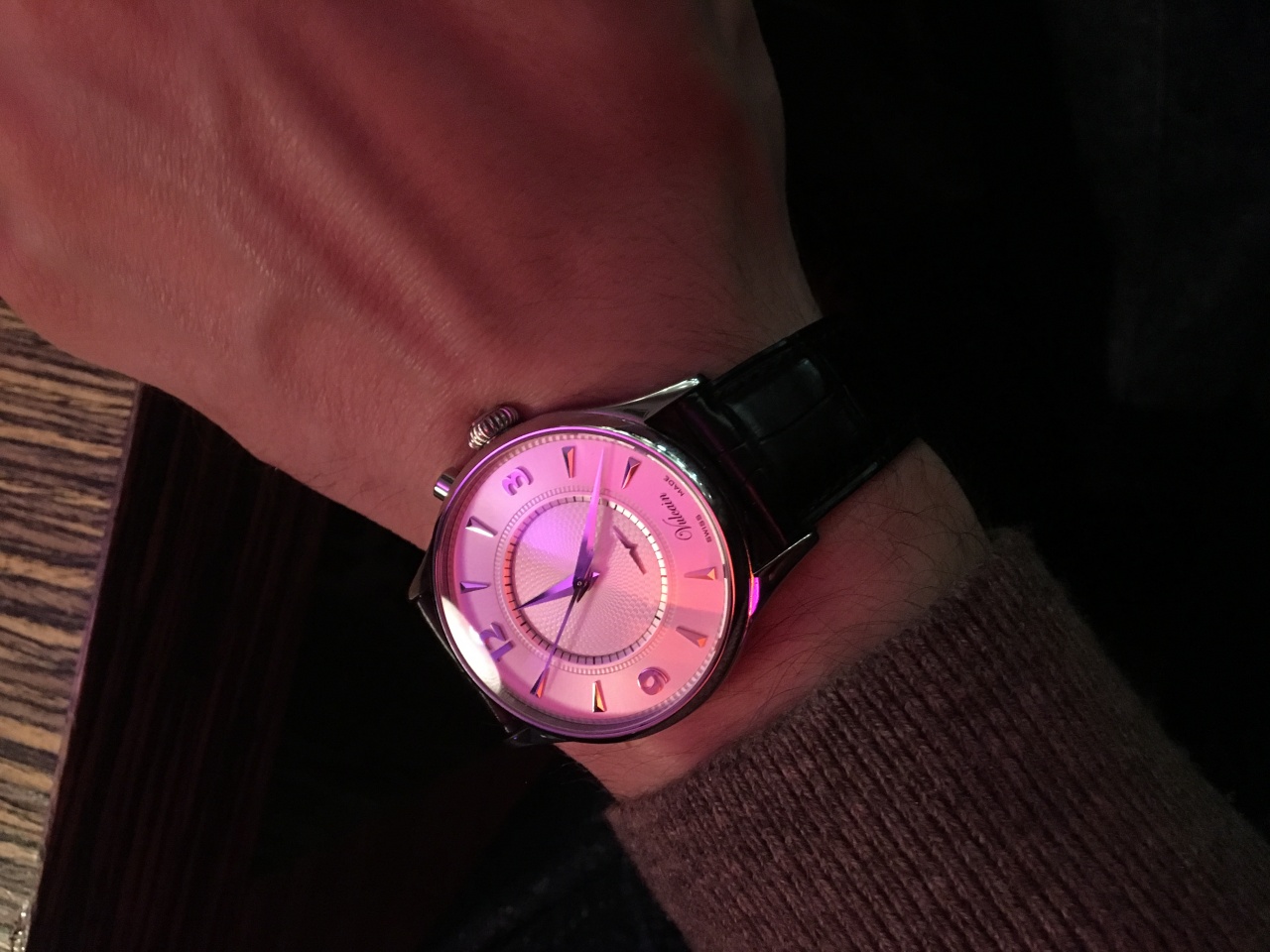 Элегантный минимализм, очень красивый циферблат с гильоше, который невероятно красиво переливается на солнце (см. мое видео). Редкое усложнение - будильник (стрелка будильника скрыта). Все это образец часового искусства от легендарной и до сих пор независимой мануфактуры.