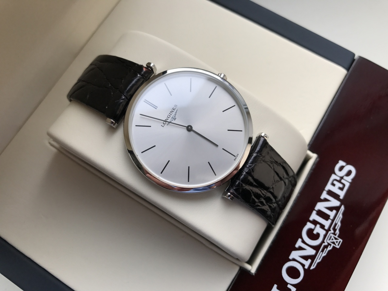КЛАССИКА!!! Longines La Grande Classique /КВАРЦ/ СЕРЕБРИСТЫЙ ЦИФЕРБЛАТ/ КРОКОДИЛ